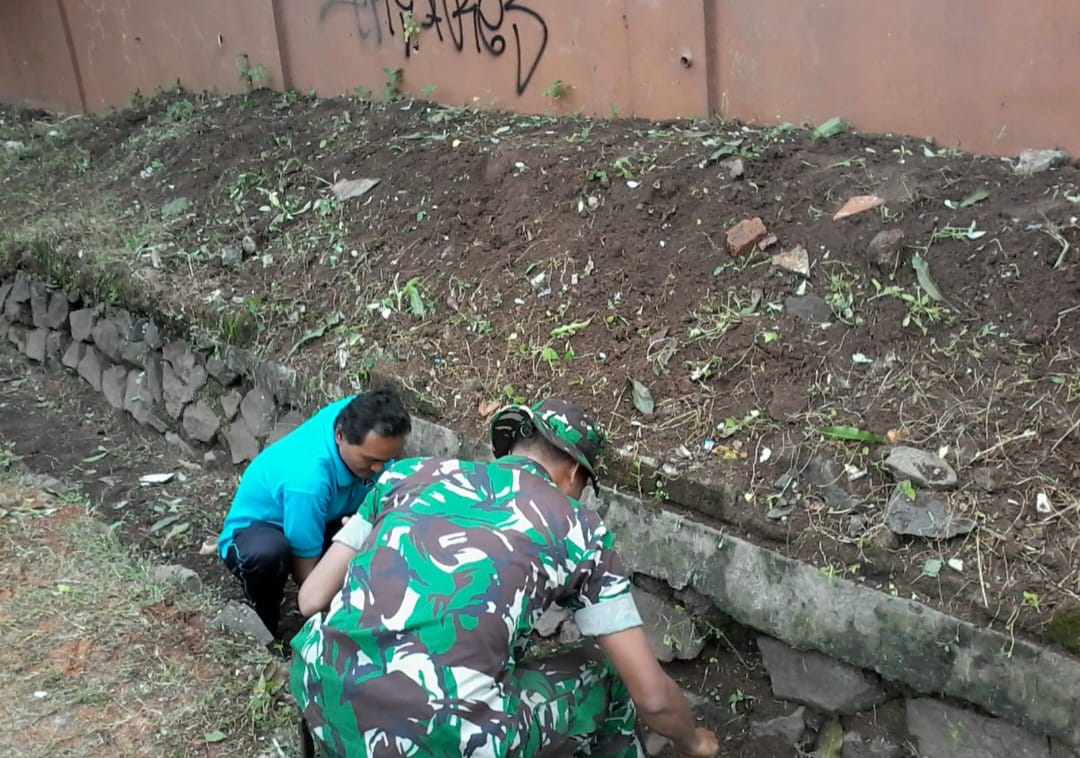 Danramil 05/Ciputat Mayor Inf Tarsan menjelaskan, personil yang terlibat dalam kerja Bakti, Babinsa Kelurahan Serua Indah di bantu Peltu Bambang, Pelda Satria, Serka Joko, Sertu Muhadi dan Serda Miko.