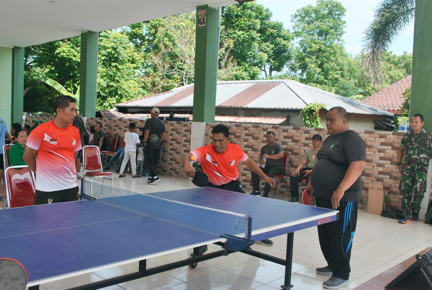 Keterangan Gambar : Kodim 0510/Trs menggelar turnamen tenis meja antar Koramil. Turnamen di gelar di Aula Makodim 0510/Trs
