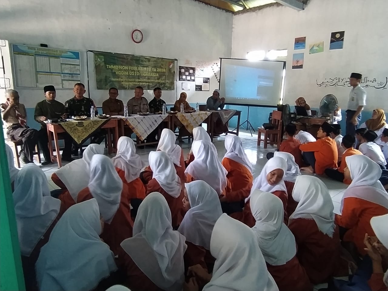 MEGAPOLITANPOS.COM Kab Tangerang, Tigaraksa - TMMD Ke-120 Kodim 0510/Tigaraksa terus menggelorakan semangat kemanunggalan TNI dan rakyat dalam pembangunan di wilayah Kecamatan Sukadiri, Kab.Tangerang. Selain kegiatan fisik, kegiatan non-fisik pun semakin intensif dilaksanakan, baik ke sekolah-sekolah maupun ke lingkungan penduduk.