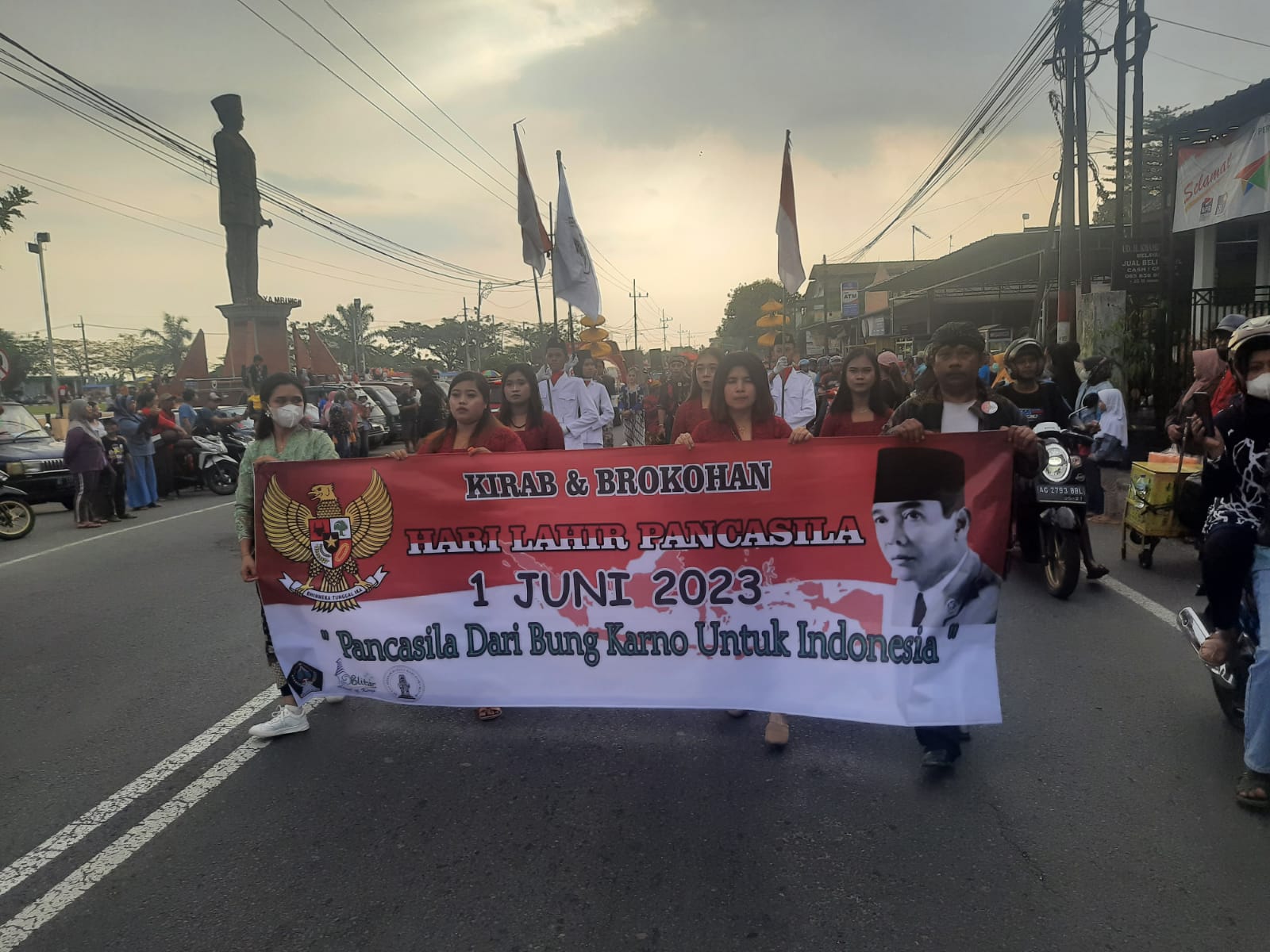 MEGAPOLITANPOS.COM, Blitar - Momentum 1 Juni telah ditetapkan sebagai hari lahirnya Pancasila, menandai hari lahirnya Pancasila kelompok masyarakat, seniman dan budayawan Kabupaten Blitar menggelar acara bertajuk Brokohan Pancasila dengan menampilkan iring-iringan pembawa lambang negara Republik Indonesia.