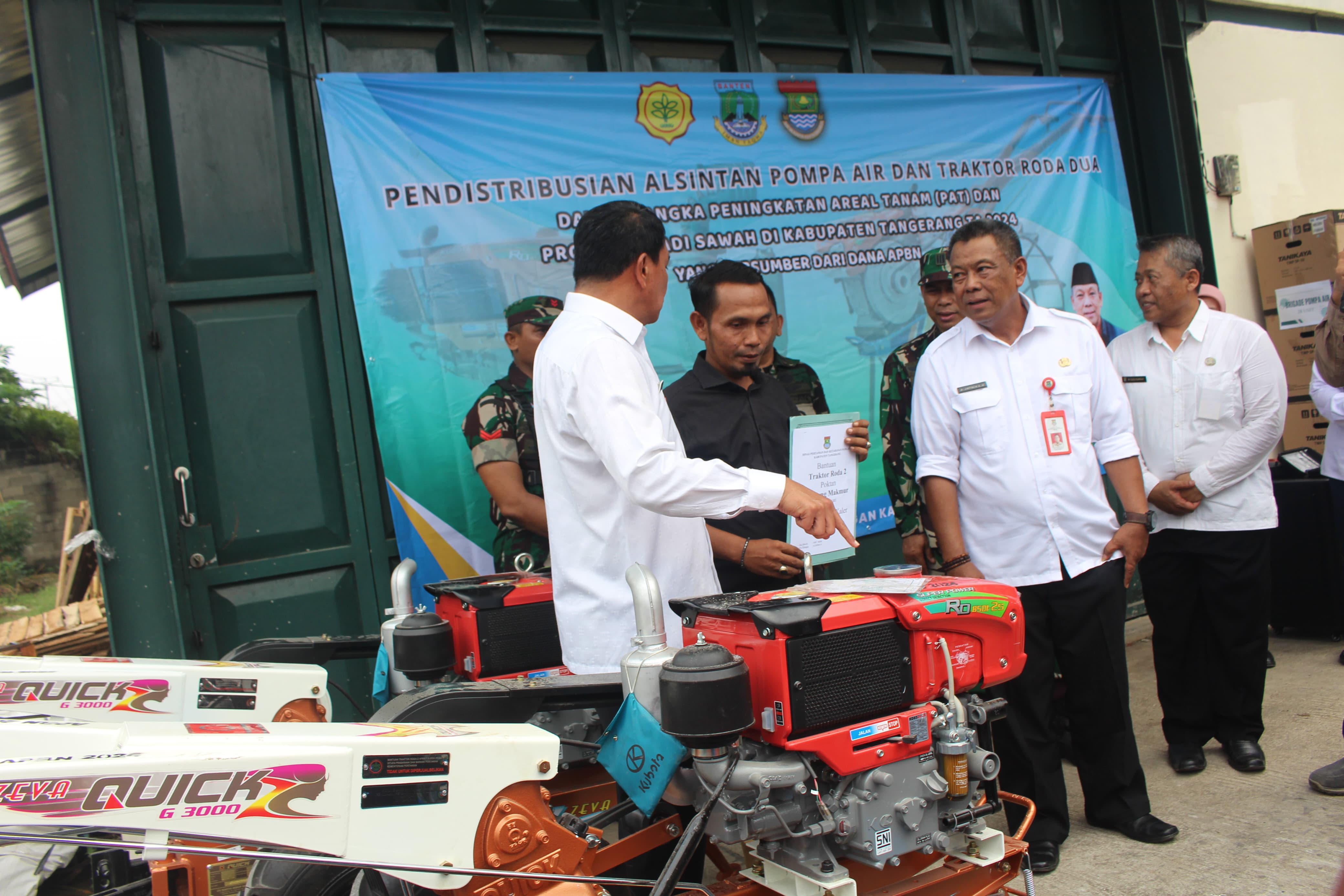 Alat pertanian yang di distribusikan adalah bantuan dari Kementrian Pertanian melalui Dinas Pertanian Kabupaten Tangerang yang di berikan langsung oleh Sekda Kabupaten Tangerang Maesyal Rasyid di dampingi Kadis Pertanian Asep Jatnika.