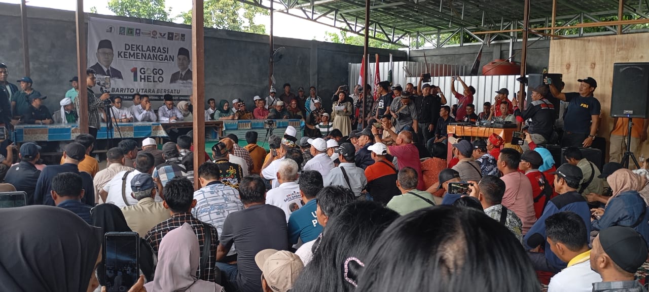Deklarasi yang merupakan momen bersejarah dalam perjalanan Demokrasi Kabupaten Barito Utara ini merupakan tanda bahwa bahwa kita siap mengemban Amanah yang telah diberikan oleh masyarakat Barito Utara, hal ini diucapkan oleh Ketua tim pemenangan GOGO HELO, H Hasrat saat memberikan sambutan.
