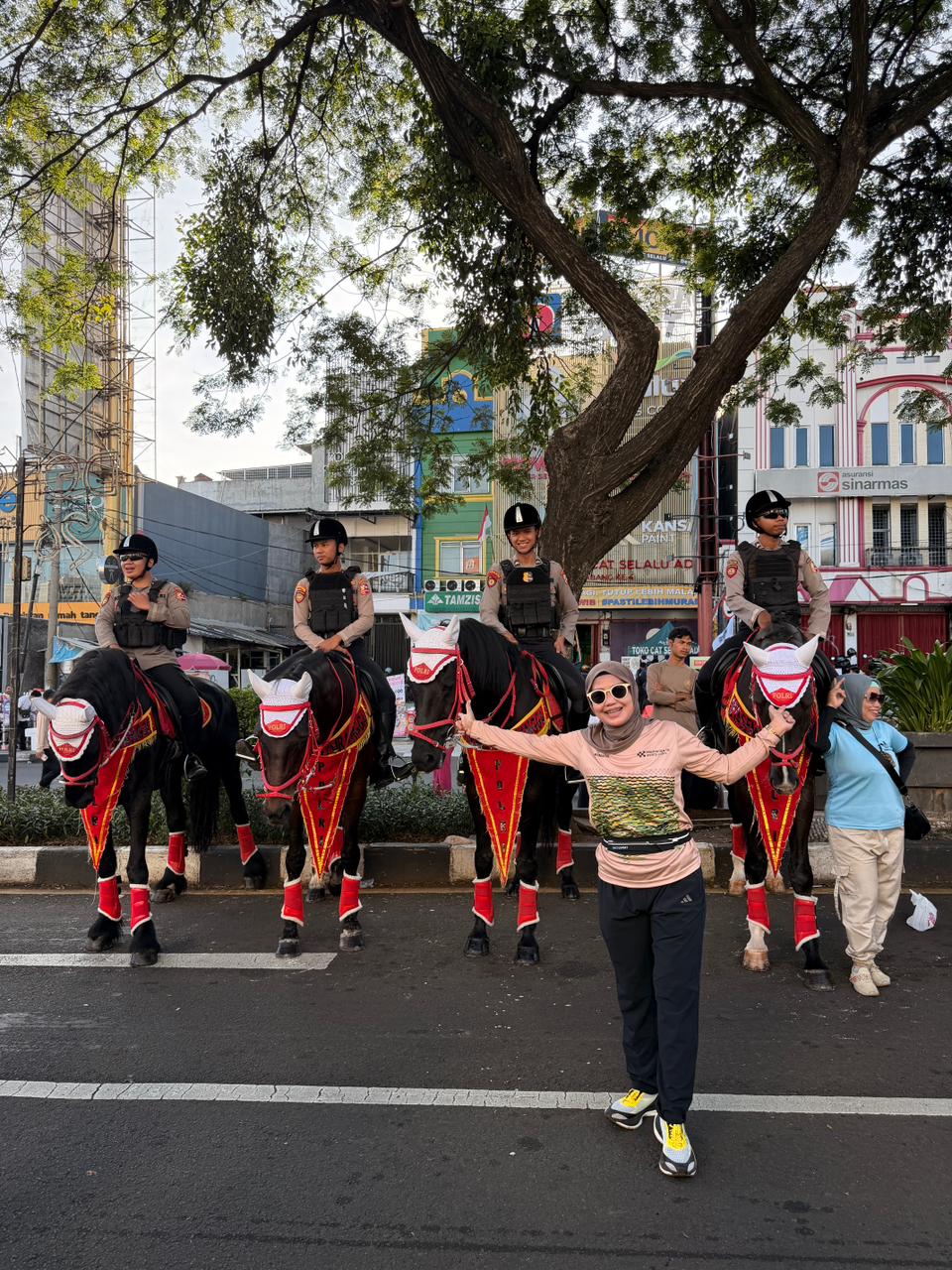 Empat ekor kuda gagah dari Detasemen Turangga yang turut bertugas adalah Wulinda, Silke, Keywest, dan Lewis.