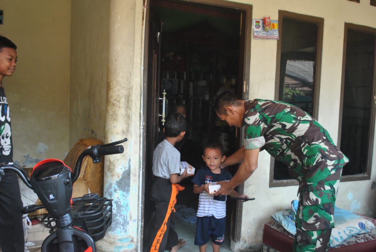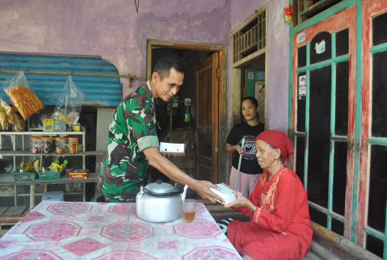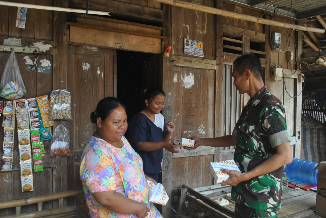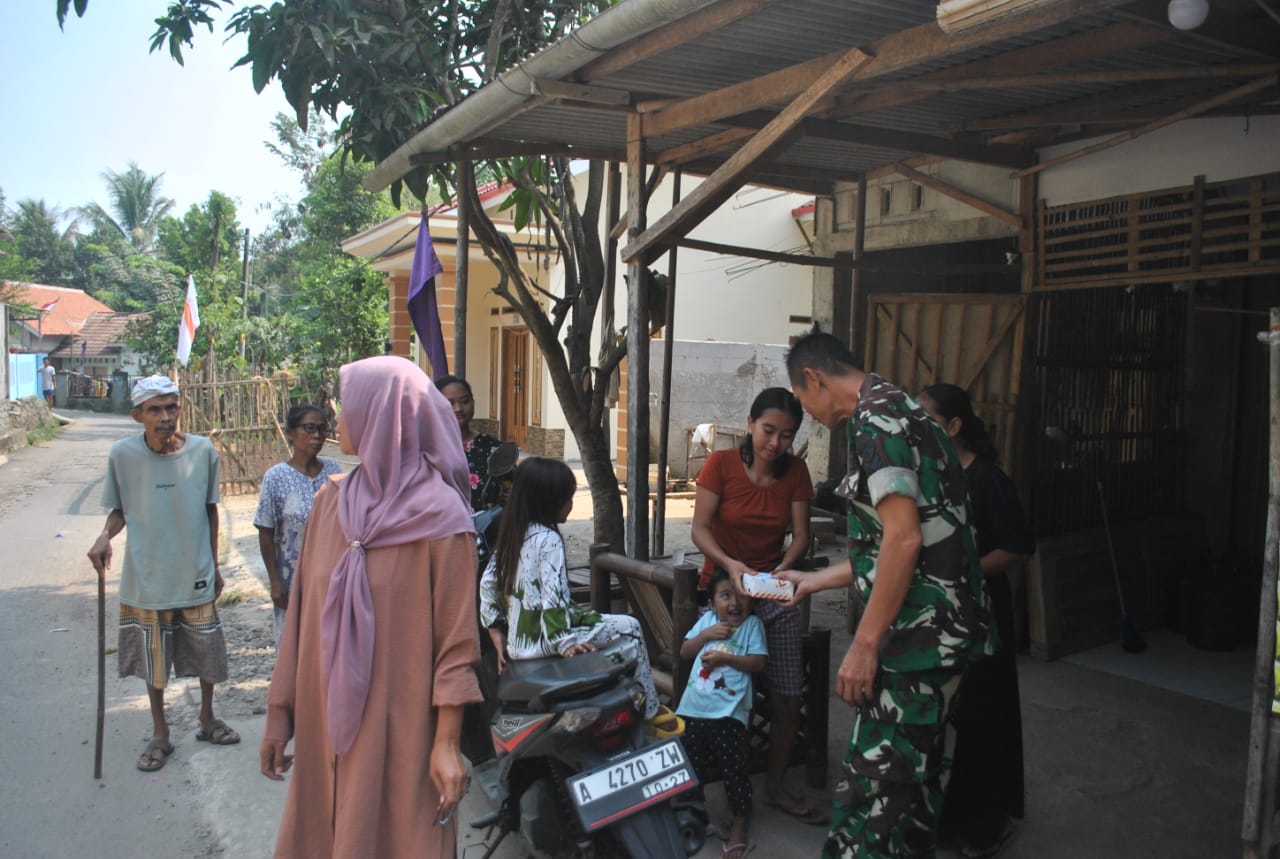 Keterangan Gambar : Kodim 0510/Trs peduli terhadap warga masyarakat sekitar dengan membagikan nasi kotak kepada warga