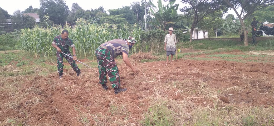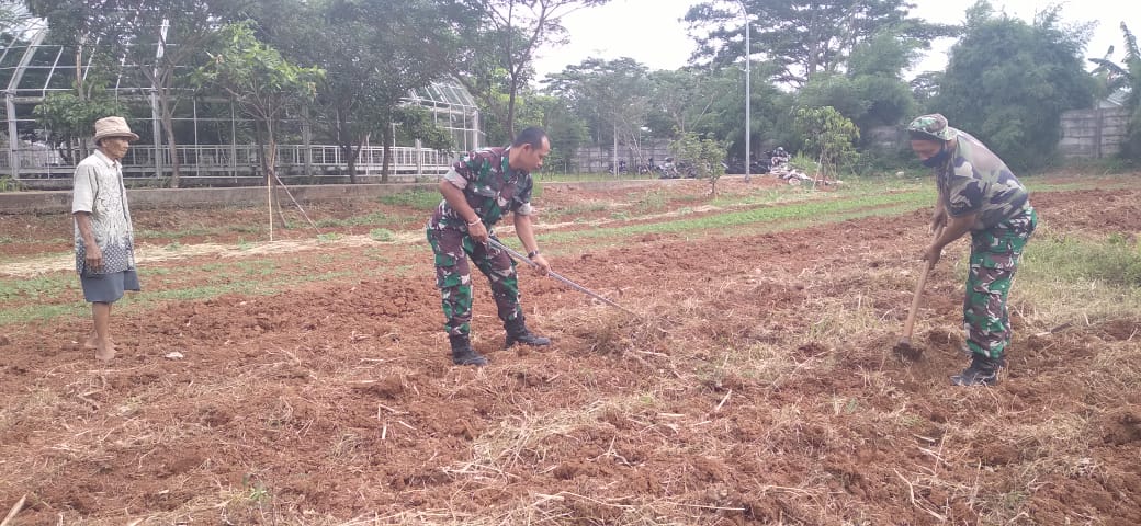 "Saat ini Anggota Koramil 01/Tgr yang di pimpin Bati Wanmil Koramil 01/Tgr sedang melakukan persiapan lahan dengan melakukan pembajakan lahan membersihkan rumput dan ilalang.