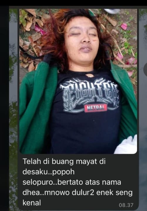 Unit Resmob Satreskrim Polres Blitar yang dipimpin IPDA Jason Kurnia, S.Tr.K., bersama Unit Identifikasi segera mendatangi lokasi dan melakukan olah TKP. Dari hasil pemeriksaan dan identifikasi, diketahui korban merupakan pemandu lagu yang bekerja di sebuah kafe di wilayah Mangunharjo, Kediri.