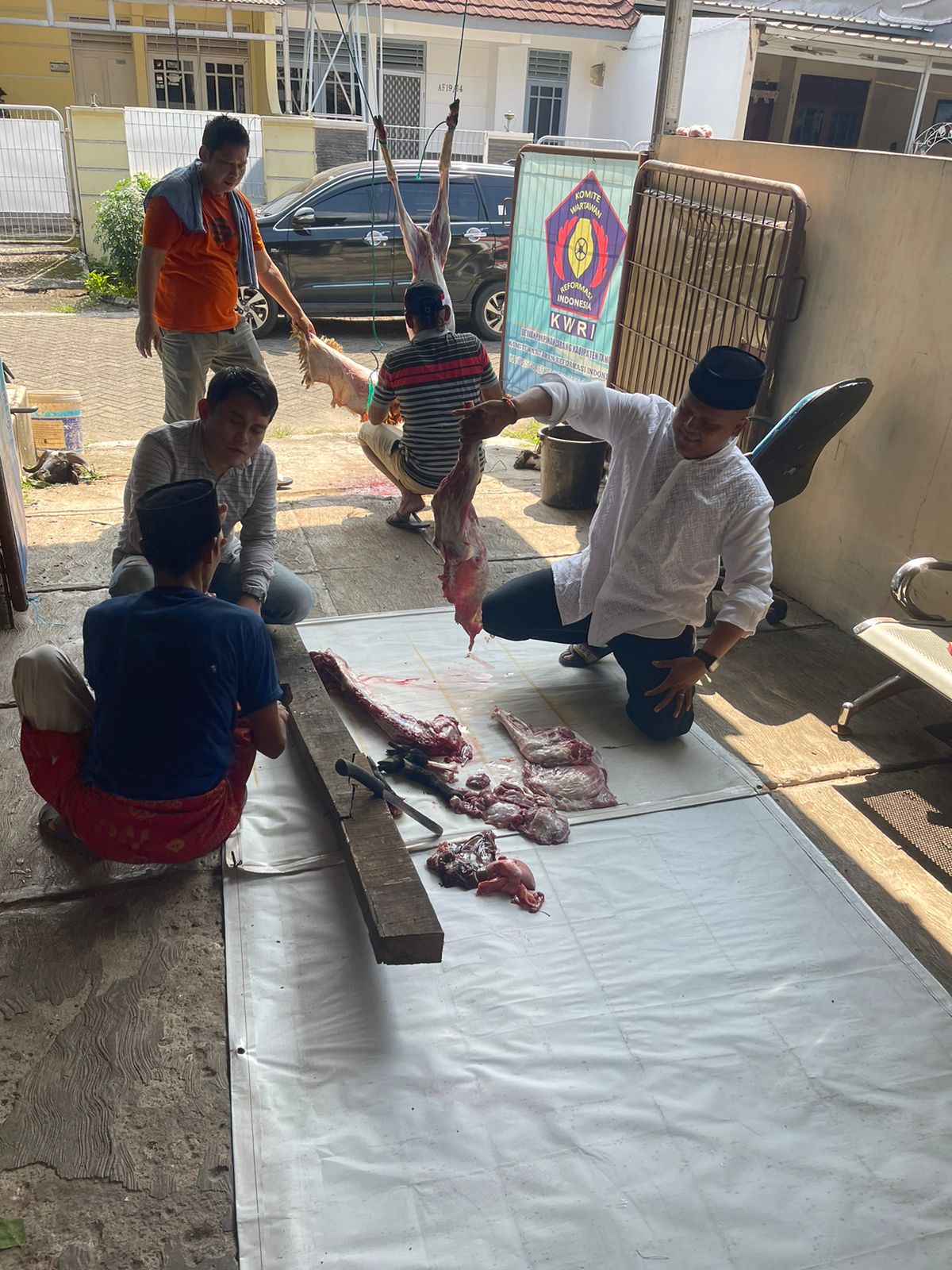 Pemotongan hewan kurban yang disembelih dilaksanakan pada Kamis (29/6/2023) dihalaman Kantor DPC KWRI Kabupaten Tangerang dengan jumalah 3 (tiga) ekor kambing.