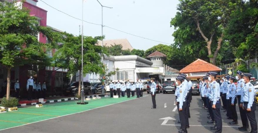 Apel dipimpin langsung oleh Kepala Lapas (Kalapas) Salemba Yosafat Rizanto, di halaman depan Lapas Salemba, Jakarta Pusat, Kamis (27/4/2023).