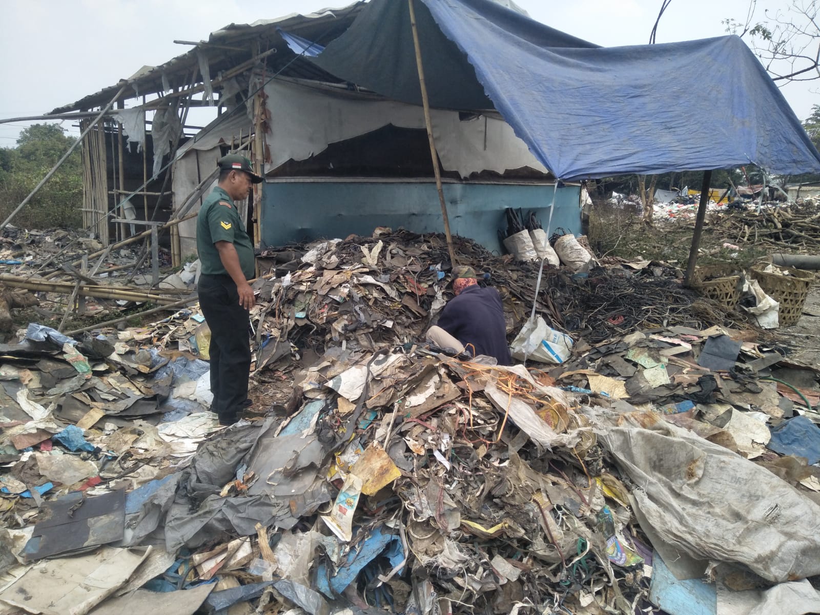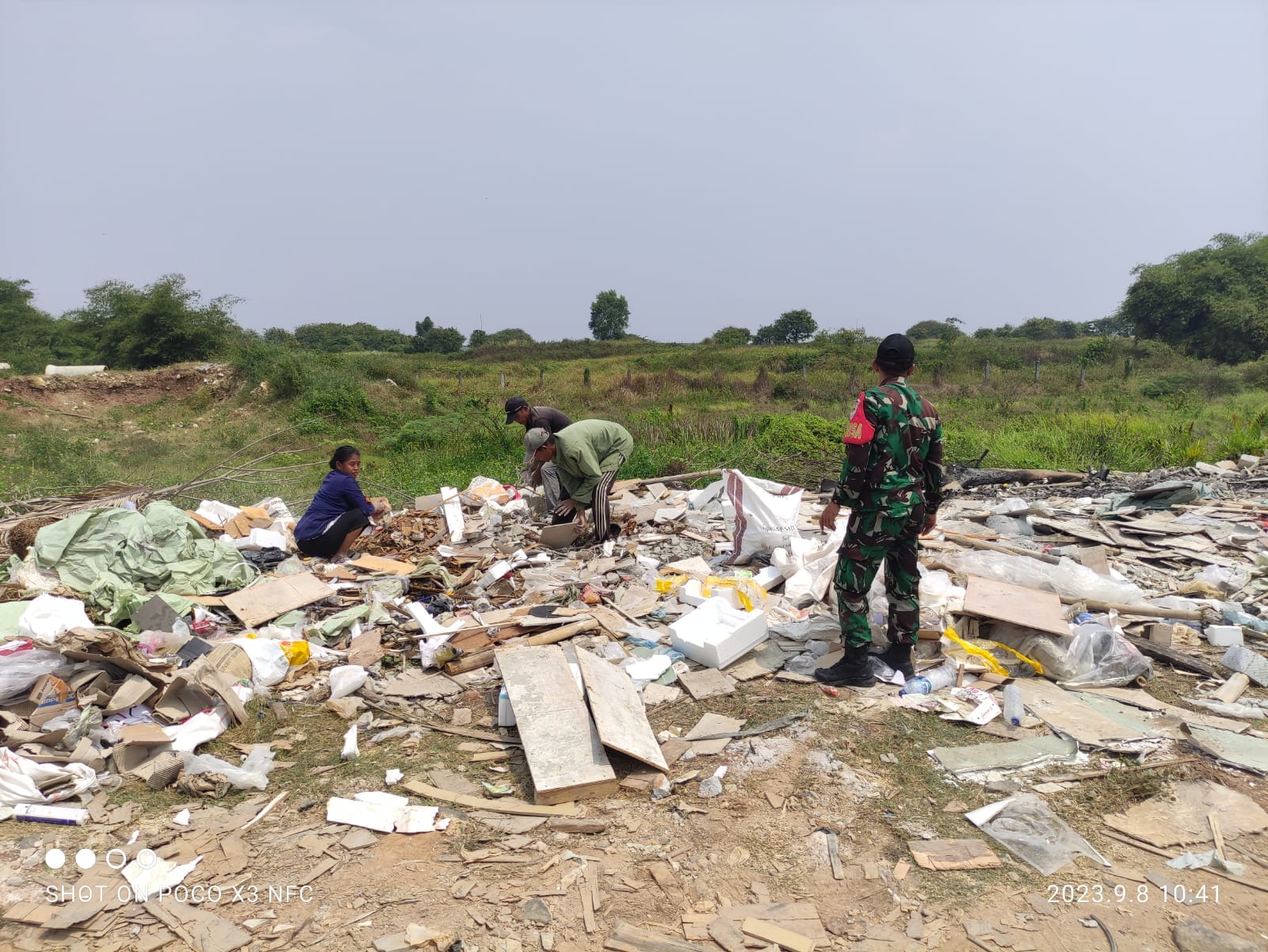 Keterangan Gambar : Koramil 11/Pasar Kemis, Kodim 0510/Trs melakukan patroli wilayah untuk mengimbau kepada warga masyarakat tidak membakar sampah sembarangan.