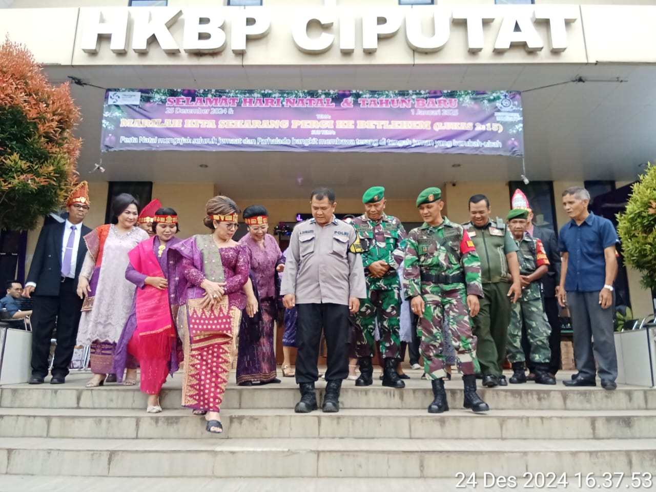 MEGAPOLITANPOS.COM Kota Tangerang - Sebanyak 5 personil jajaran Koramil 05/Ciputat, Kodim 0506/Tgr di Terjunkan untuk membantu pengamanan misa malam natal tahun 2024 sesi pertama gereja Katolik Santo Nikodemus Paroki, Selasa (24/12/2024).
