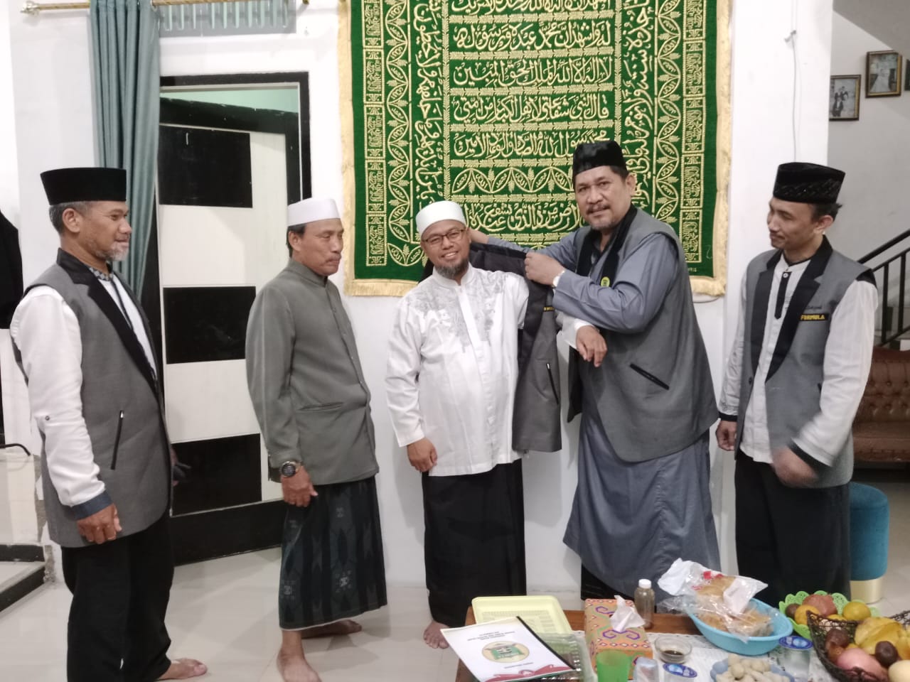 Silaturrahim di akhiri dengan memberikan dan memakaikan seragam berupa jas rompi Formula kepada KH. Sholahuddin oleh Ketum, Dedi Hermanto.