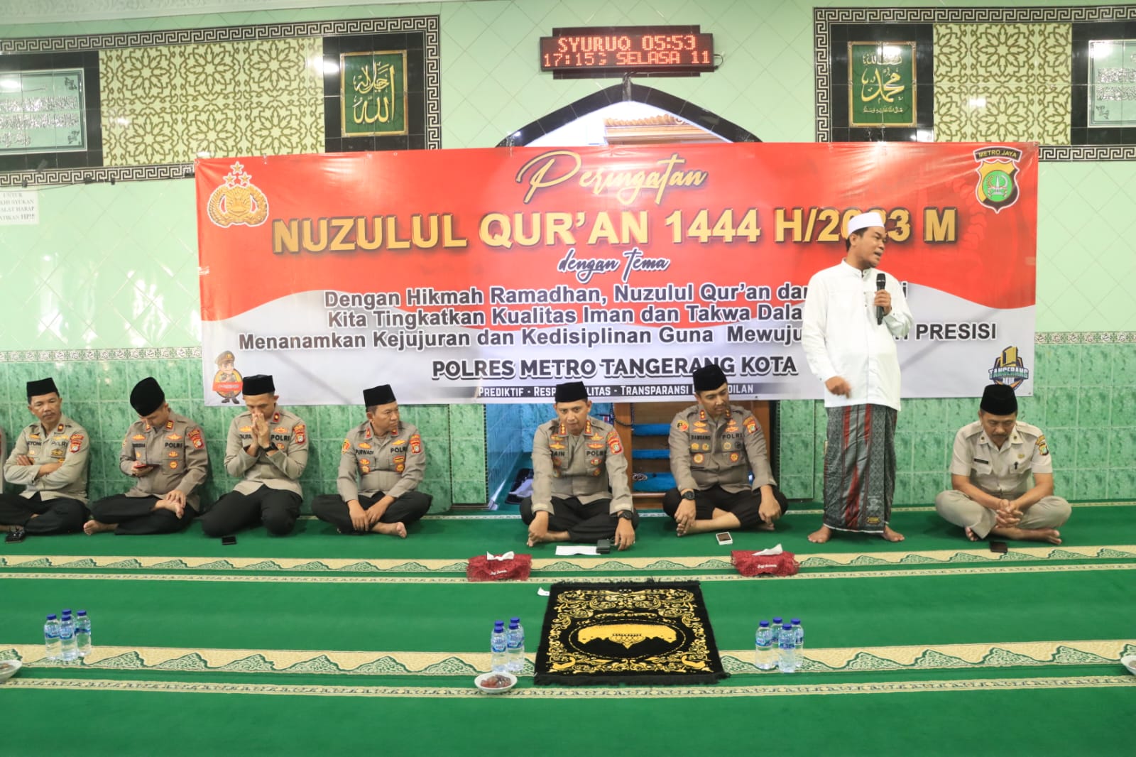 Keterangan Gambar : Jajaran Polres Metro Tangerang Kota menggelar acara peringatan Nuzulul Qur’an 1444 H, di Masjid Al-Kautsar