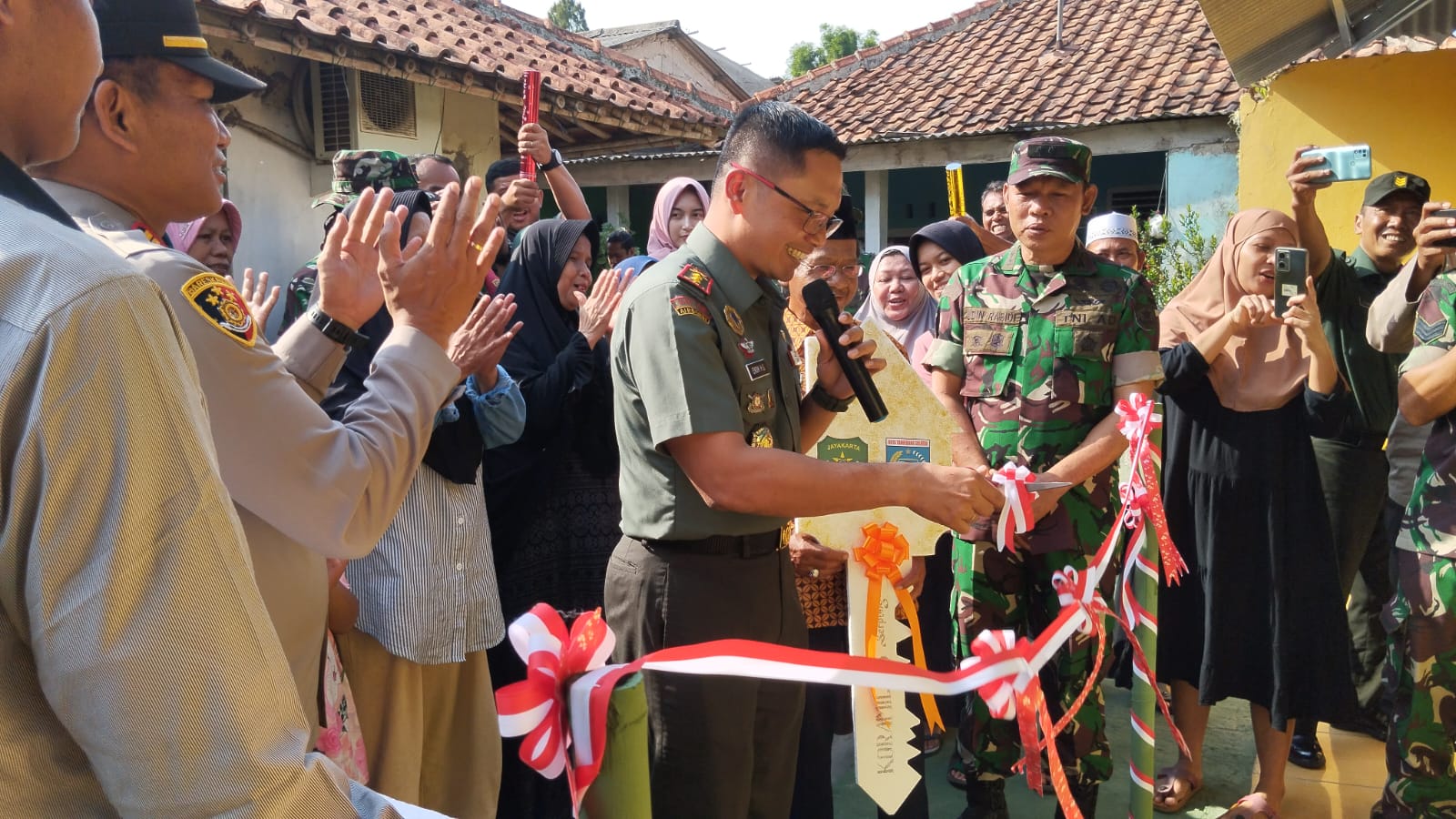 MEGAPOLITANPOS.COM Kota Tangsel - Komandan Kodim 0506 Tangerang Letkol Inf Endik Hendra Sandi, S.Sos., M.I.Pol, menyerahkan kunci rumah kepada Bapak Saimin (67 tahun), setelah selesai dj rehab oleh TNI AD melalui program Bakti Juang dalam rangka memperingati Hari Juang TNI-AD dan HUT Ke-74 Kodam Jaya.