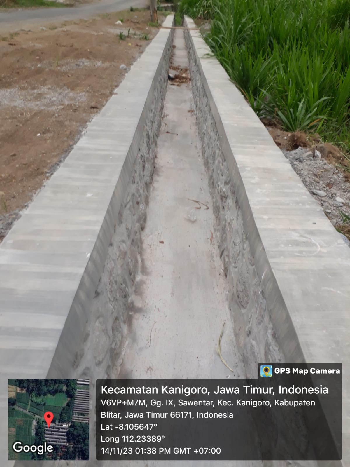 Keterangan Gambar : Kondisi proyek irigasi di Dusun Centong, Desa Sawentar Kecamatan Kanigoro dalam kondisi retak.