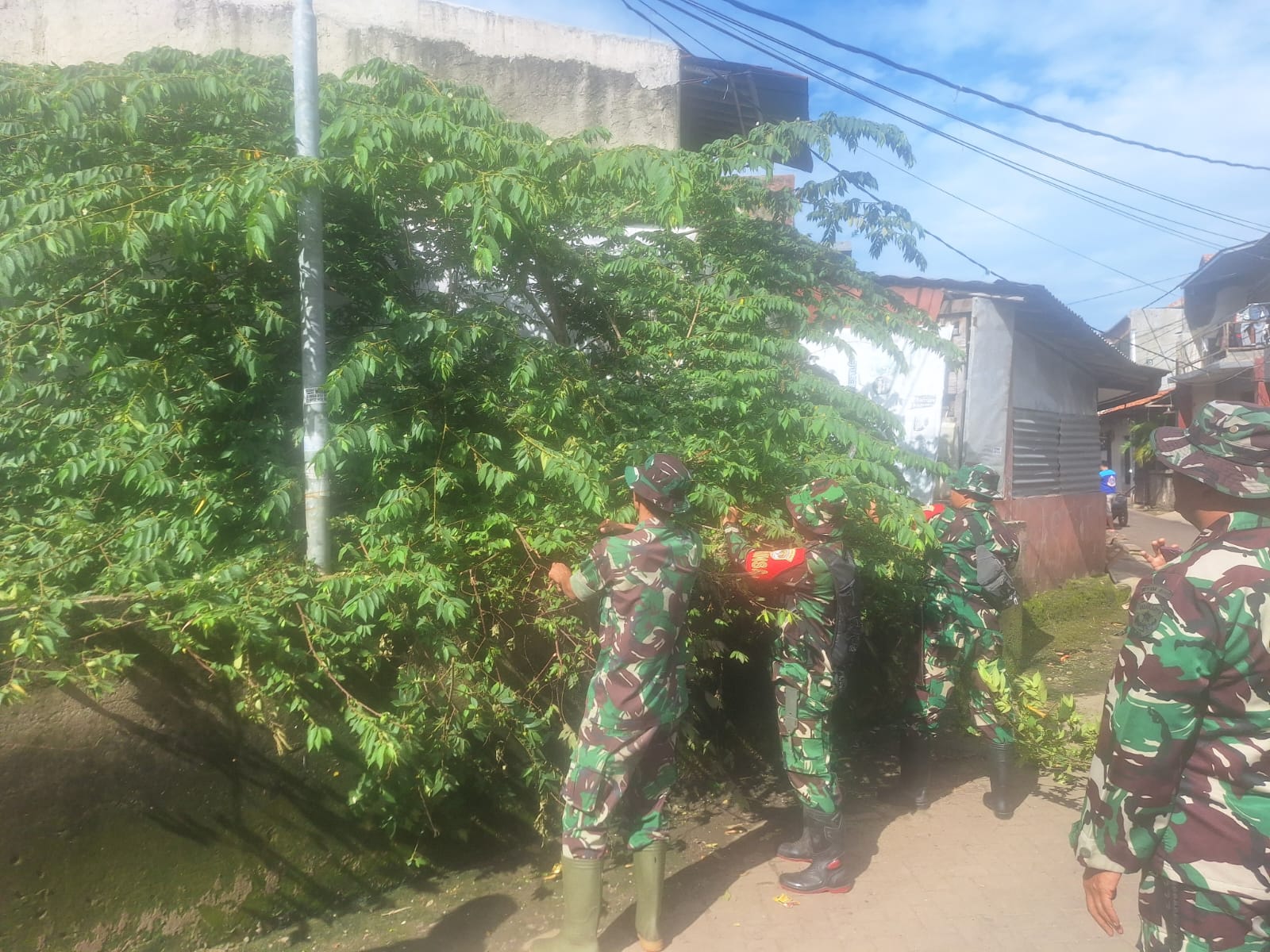 Dalam mengantisipasi banjir Koramil 06/CBD menurunkan 8 personil yang di pimpin Serka Abu Naim bersama Ketua RT dan warga sekitar.