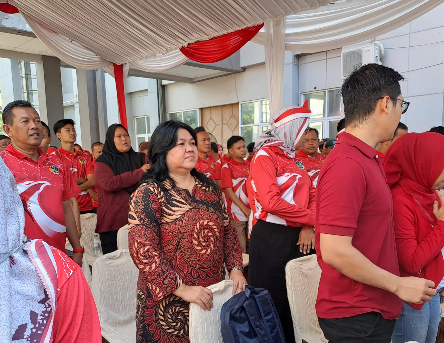 Keterangan Gambar : Kepala Kantor ATR/BPN Kabupaten Tangerang H. Joko Susanto, A.Ptnh, M.Si. di depan para pejabat dan pegawainya kurang lebih 300 orang dalam upacara HUT RI ke 78