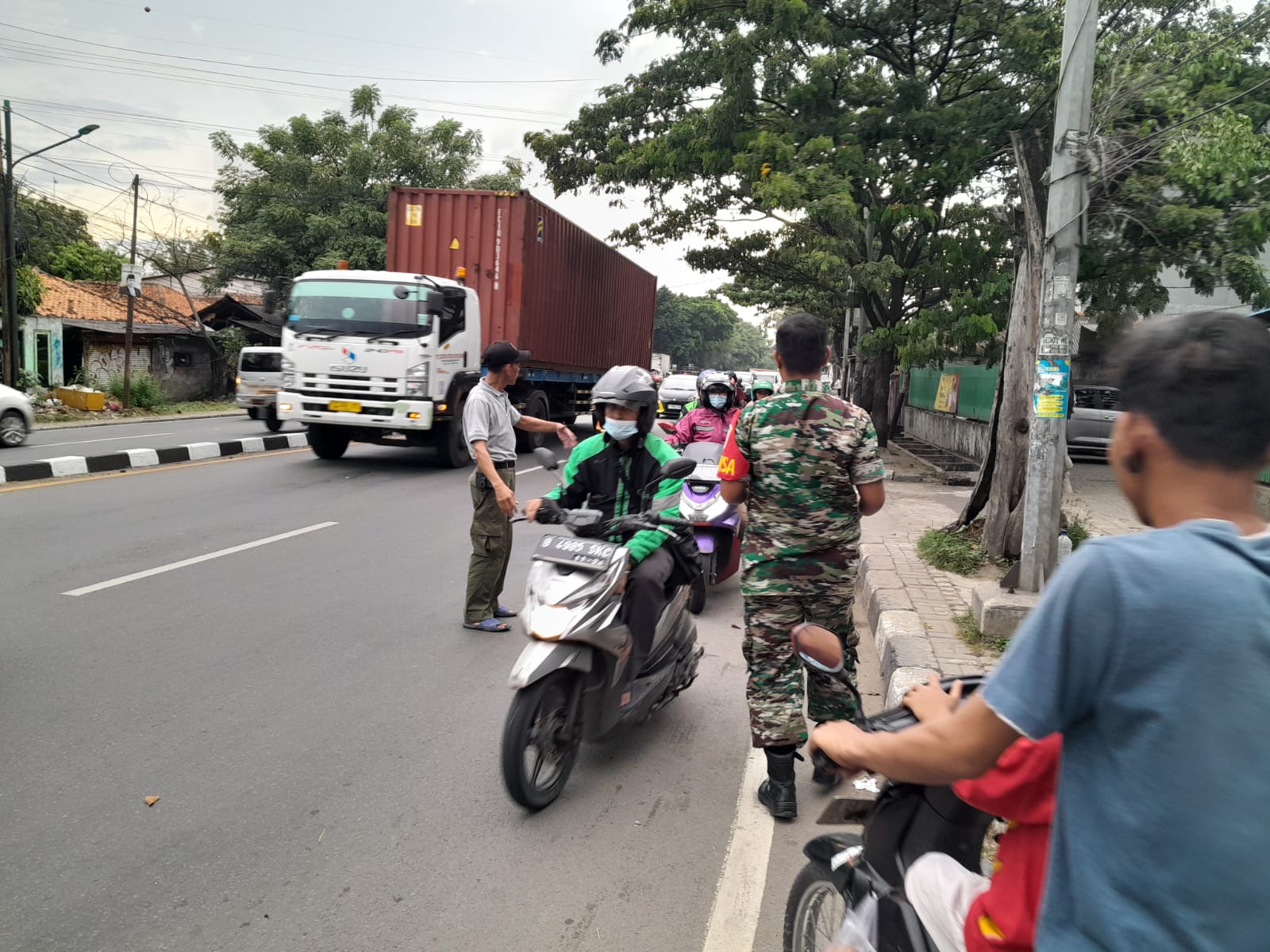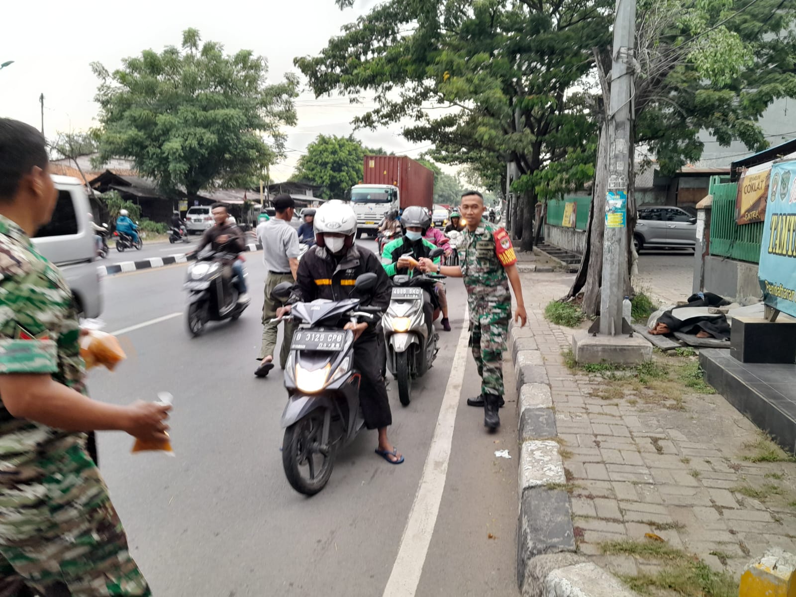 Keterangan Gambar : Babinsa Koramil 02/Btc, Kodim 0506/Tgr yang di pimpin langsung Danramil 02/Btc Mayor Inf Rohani membagikan sebanyak 100 paket takjil