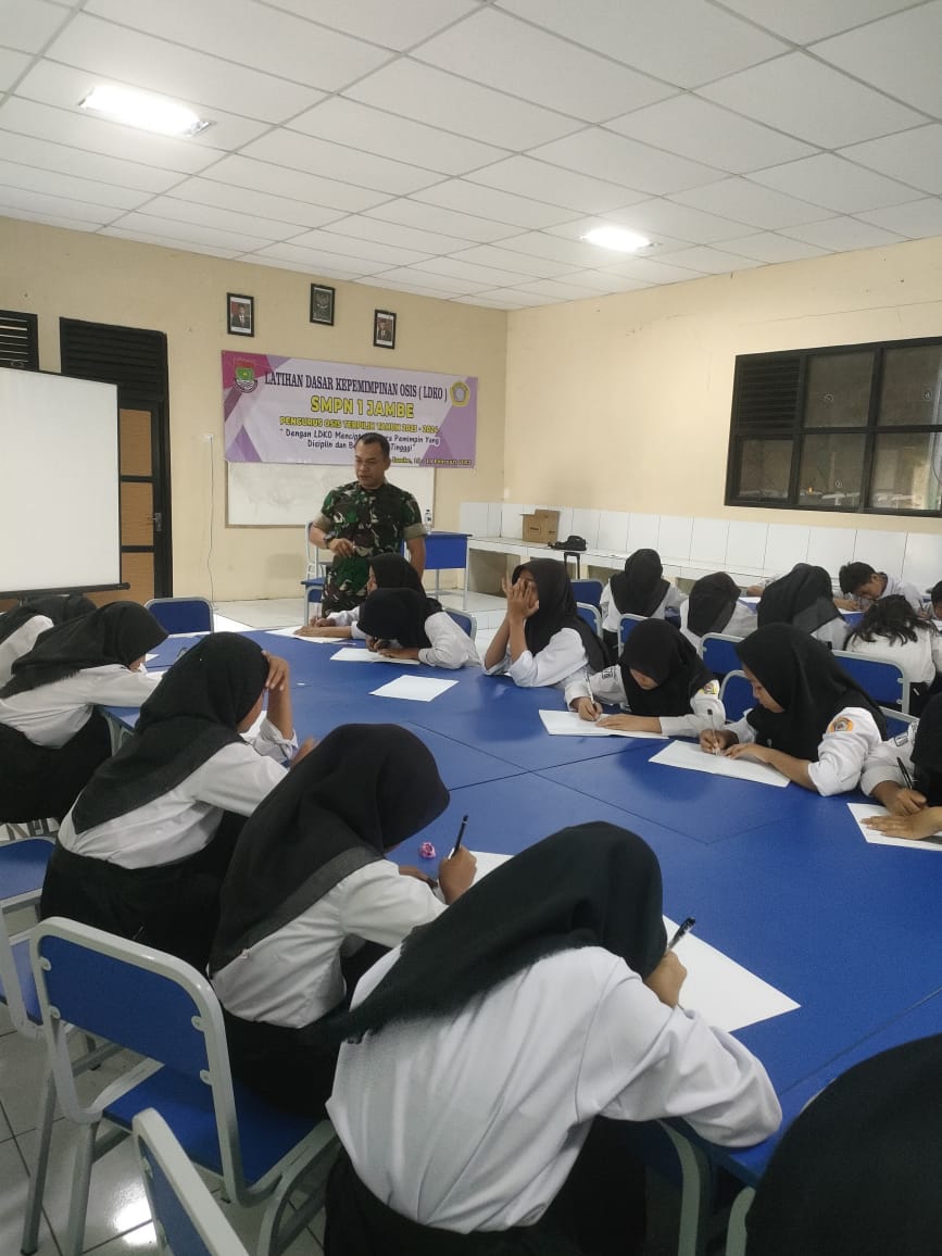 MEGAPOLITANPOS.COM Kab Tangerang - Babinsa Ranca Buaya, Koramil 06/Trs Kodim 0510/Trs Sertu Wastono memberikan latihan dasar kepemimpinan (LDK) kepada pengurus OSIS SMPN 1 Jambe Kabupaten Tangerang, Sabtu (18/02/2023).