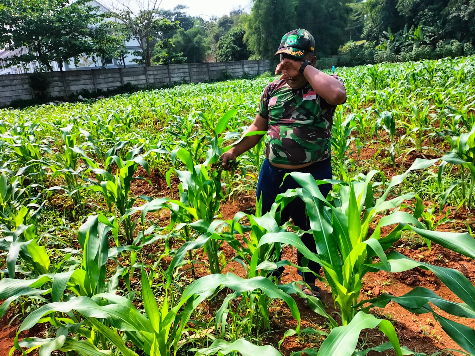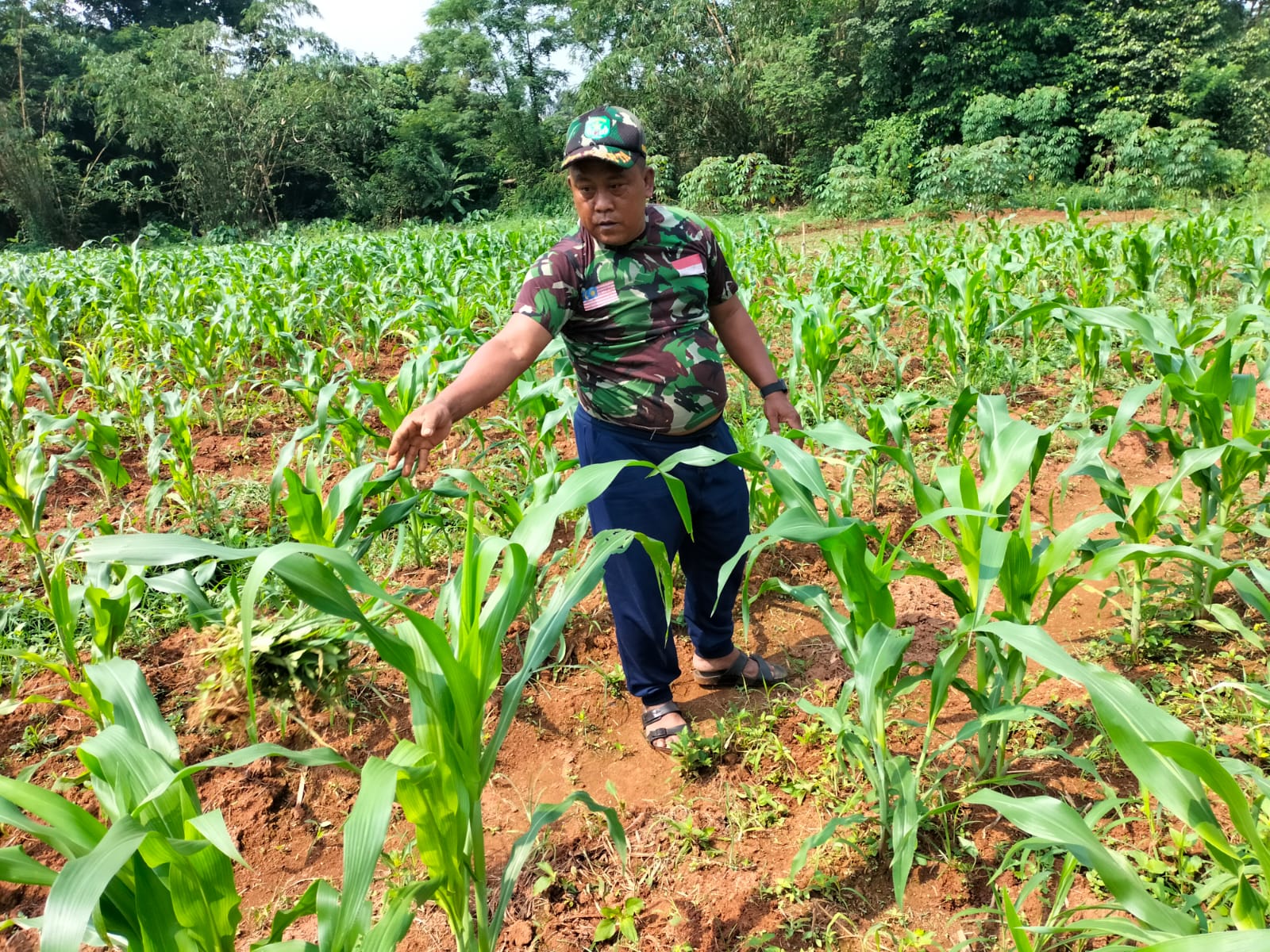 Babinsa Pedurenan Serda Agus Supriyanto terus melakukan perawatan tanaman jagung, mulai dari pembersihan rumput sampai pemberian obat obatan, agar hasil dari tanaman jagung hasil maksimal. ** (Nan)