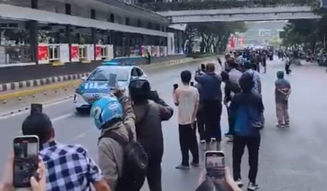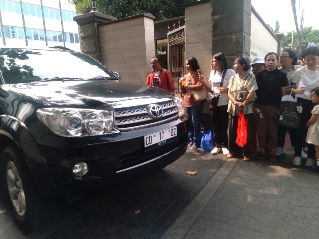 Poto:Mobil yang membawa Kursi Roda Paus Fransiskus yang Tertinggal di Kedutaan Vatikan Jakarta ke Bandara Soeta.