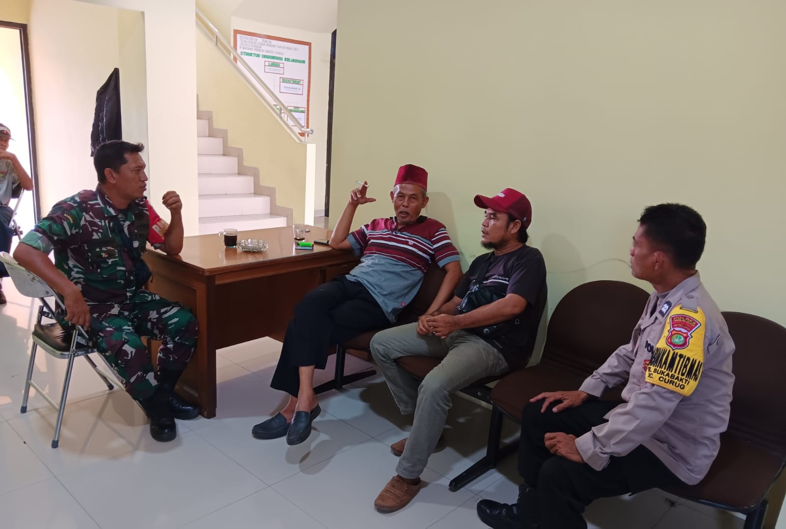 MEGAPOLITANPOS.COM Kab Tangerang, Tigaraksa - Upaya meningkatkan Kamtibmas di lingkungan, Babinsa Kelurahan Sukabakti, Koramil 02/Curug, Kodim 0510/Trs Serda Suhendra bersama Bhabimkamtibmas Aiptu Andriyanto melakukan Komsos dengan Tokoh Masyarakat. Komsos dilakukan di lingkungan RT 01/10 Kelurahan Sukabakti Kecamatan Curug Kabupaten Tangerang, Rabu (21/02/2024).