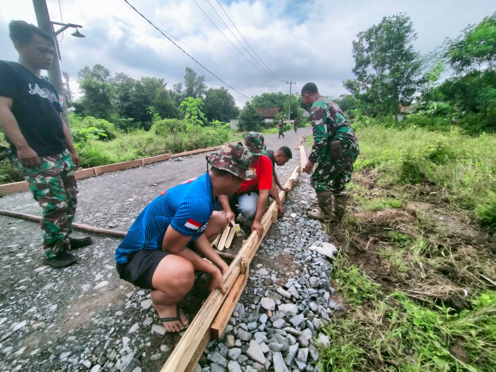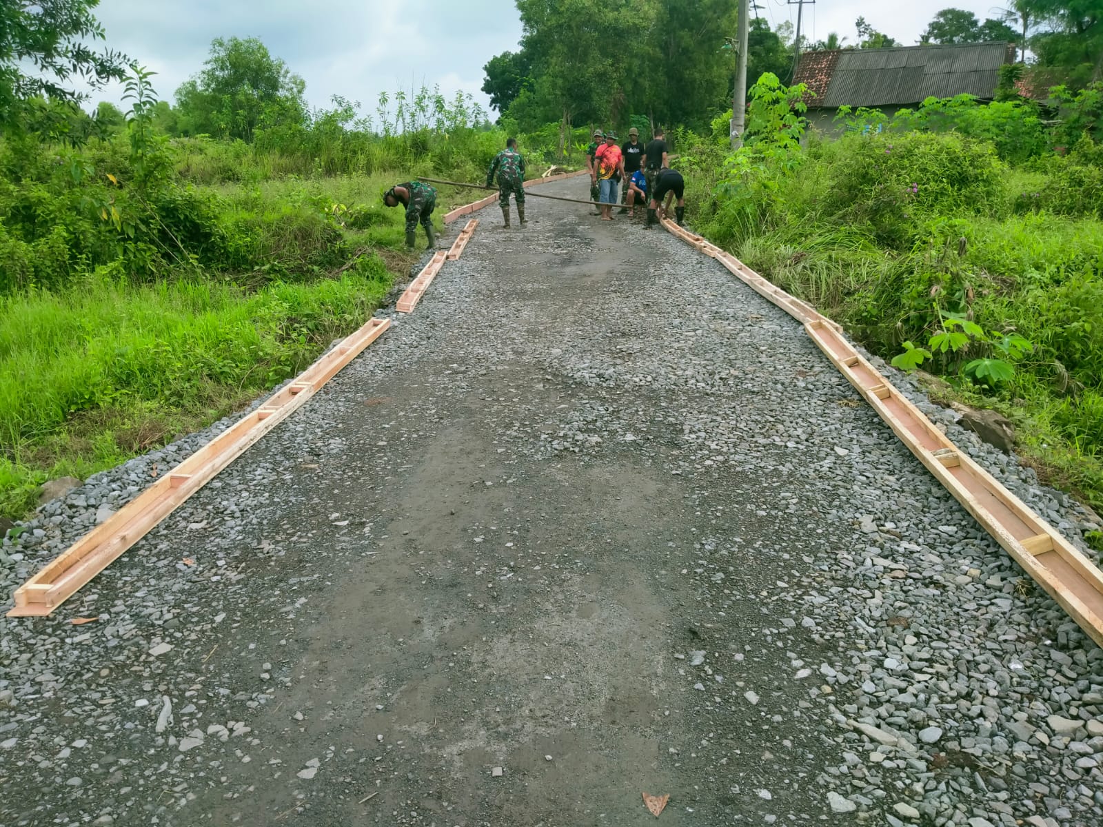 Dalam pengerjaan pengerasan jalan desa, pemasangan bagesting menjadi salah satu tahap krusial. Proses ini membutuhkan ketelitian tinggi agar material yang digunakan benar-benar sesuai dengan standar konstruksi. Satgas TMMD tak hanya bertindak sebagai pekerja lapangan, tetapi juga memastikan bahan material tersedia dan digunakan secara optimal.