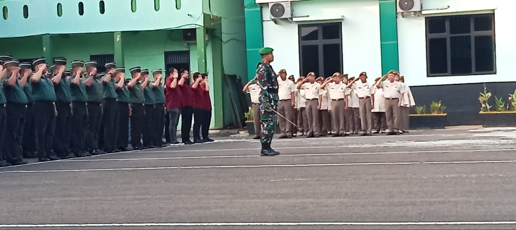 Hadir dalam upacara bendera, Perwira Penghubung Letkol Arm Udin Rasidi, Para Perwira Staf, Para Danramil dan Perwakilan Babinsa dan PNS Kodim 0506/Tgr.