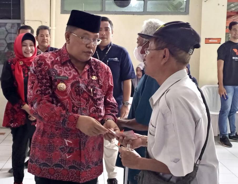 Keterangan Gambar : Walikota Blitar Drs. Santoso M.Pd melakukan monitoring Bantuan Sosial (Bansos) di Kantor Pos Kota Blitar. Kamis, (30/03/23).
