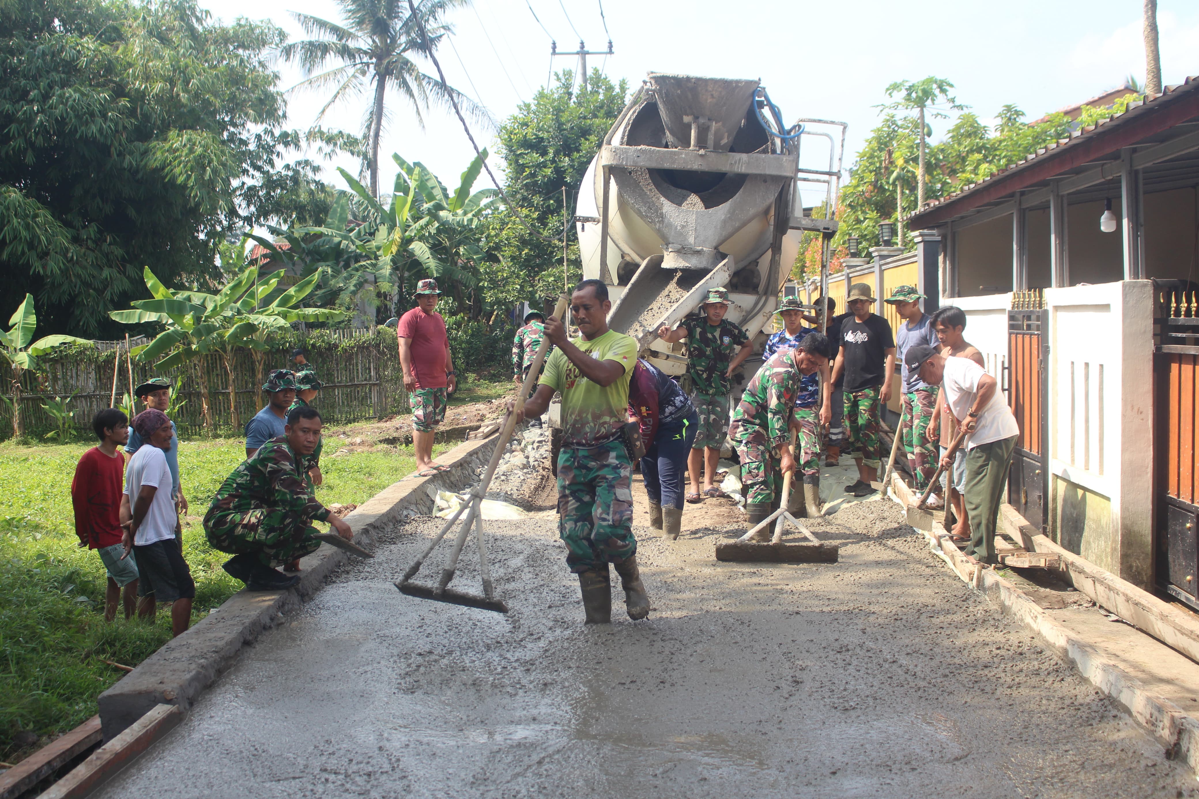 Warga Antusias Bantu Satgas TMMD 123 Lanjutkan Pengecoran Jalan