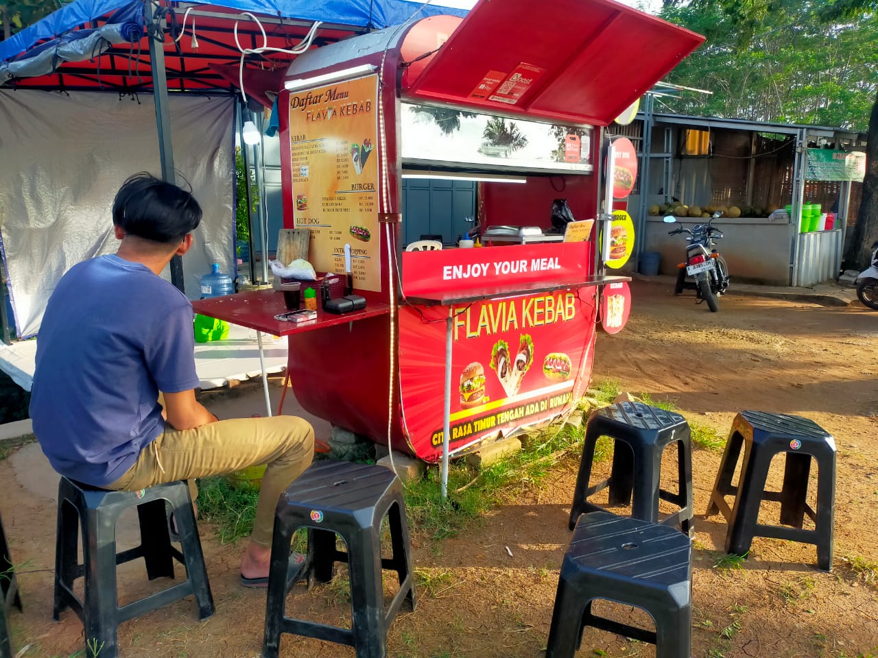 Keterangan Gambar : Sertu Mulyono Nugraha Babinsa Kel Ciputat, kongko bersama warga binaan di warung kopi untuk mengajak peran serta warga