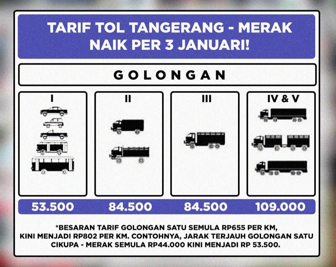 Keterangan Gambar : Tarif Tol Tangerang-Merak pada 03 Januari 2023 yang lalu