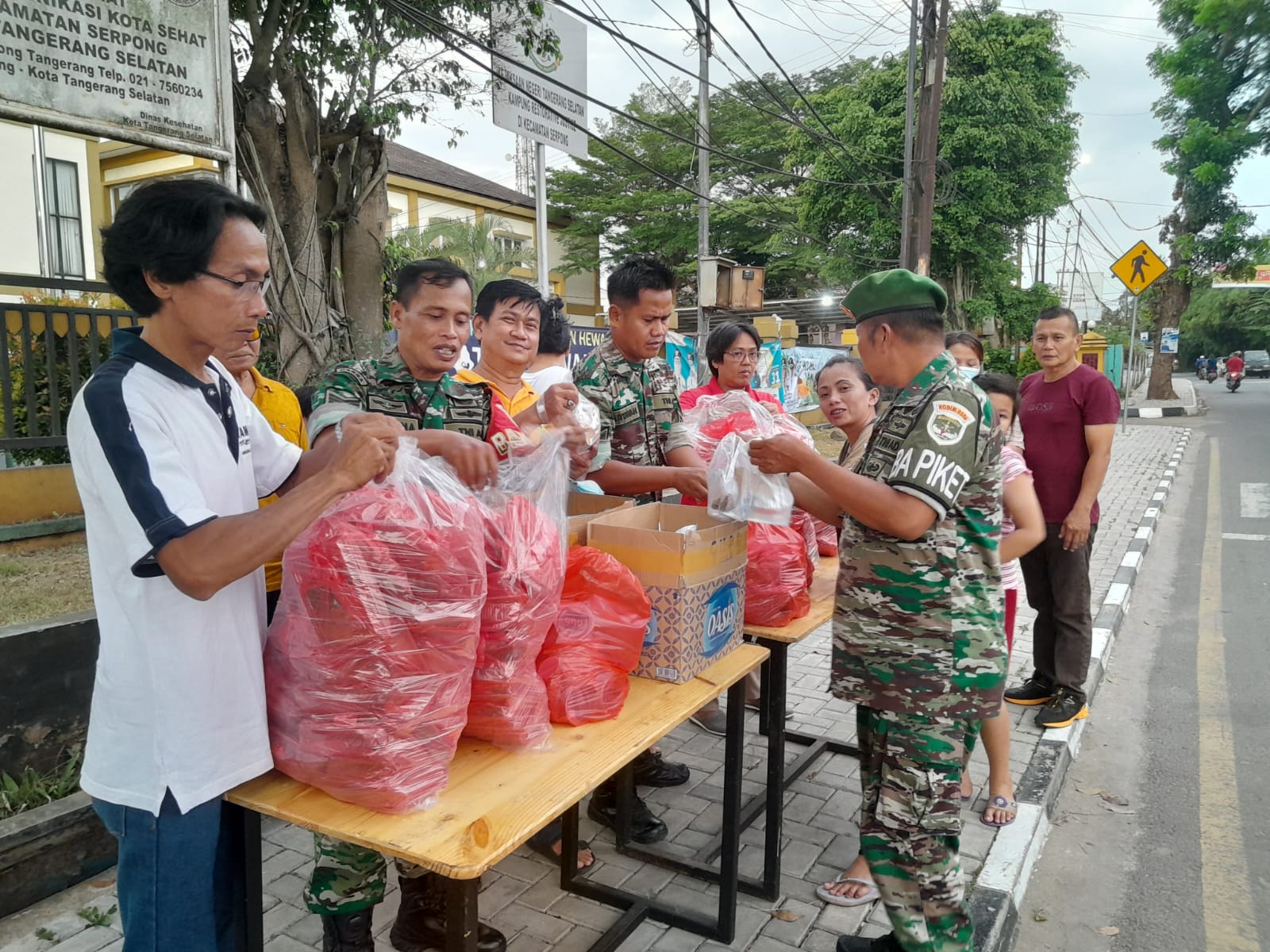 Dandim 0506/Tgr Kolonel Inf Ali Imran melalui Danramil 03/Serpong Mayor Kav Sutarto, Jum'at (14/04/2023) mengatakan anggota yang turun ke jalan memberikan langsung ke pengendara yang melewati di depan Makoramil 03/Serpong.