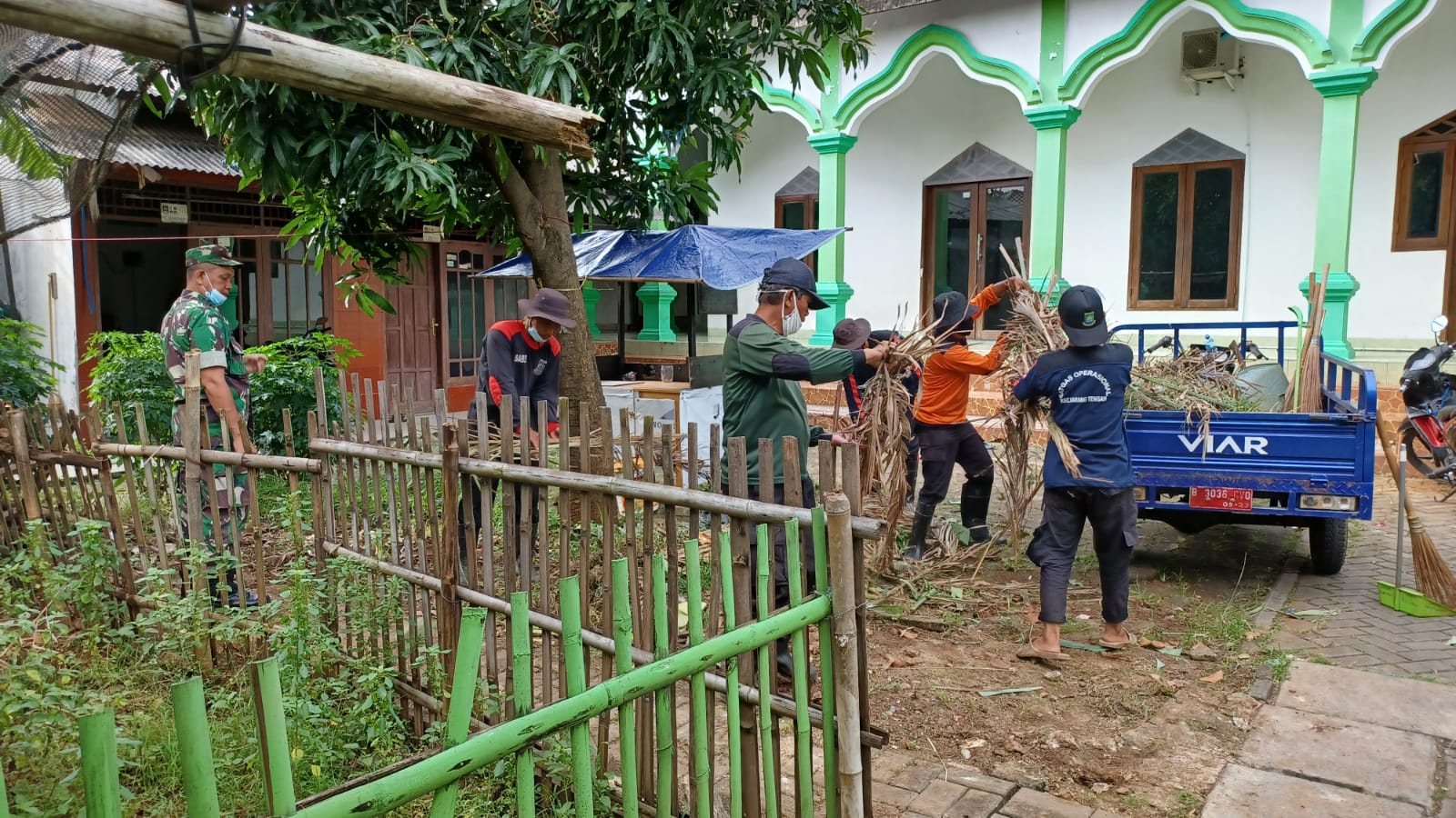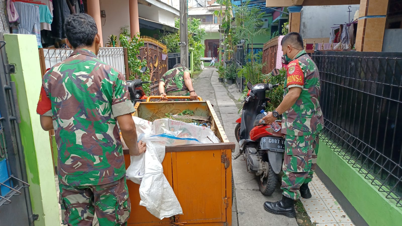 Anggota Koramil Ciledug Bersihkan Jalan dan Taman di Kampung Pancasila