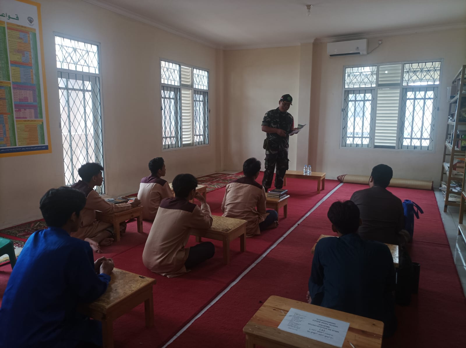 Keterangan Gambar : Koramil 04/Ciledug, Kodim 0506/Tgr Serda Andang S yang menembus ponpes dalam rangka memberikan pembekalan kepada generasi bangsa