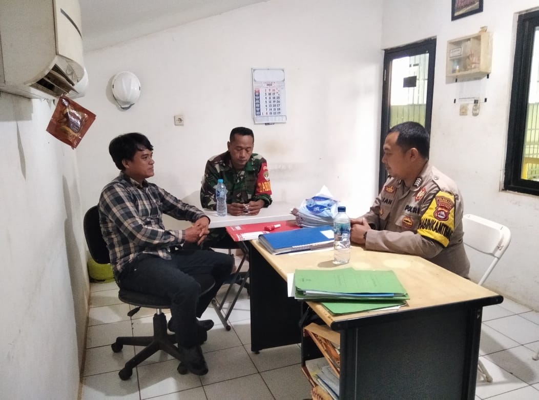 Keterangan Gambar : Upaya dalam mengatasi keamanan lingkungan Babinsa Daru Koramil 06/Trs, Kodim 0510/Trs Serda Hasan Ashari bersama Bhabimkamtibmas monitoring ke Kantor Perumahan Dari, Kecamatan Tigaraksa Kabupaten Tangerang, Senin (02/01/2023).