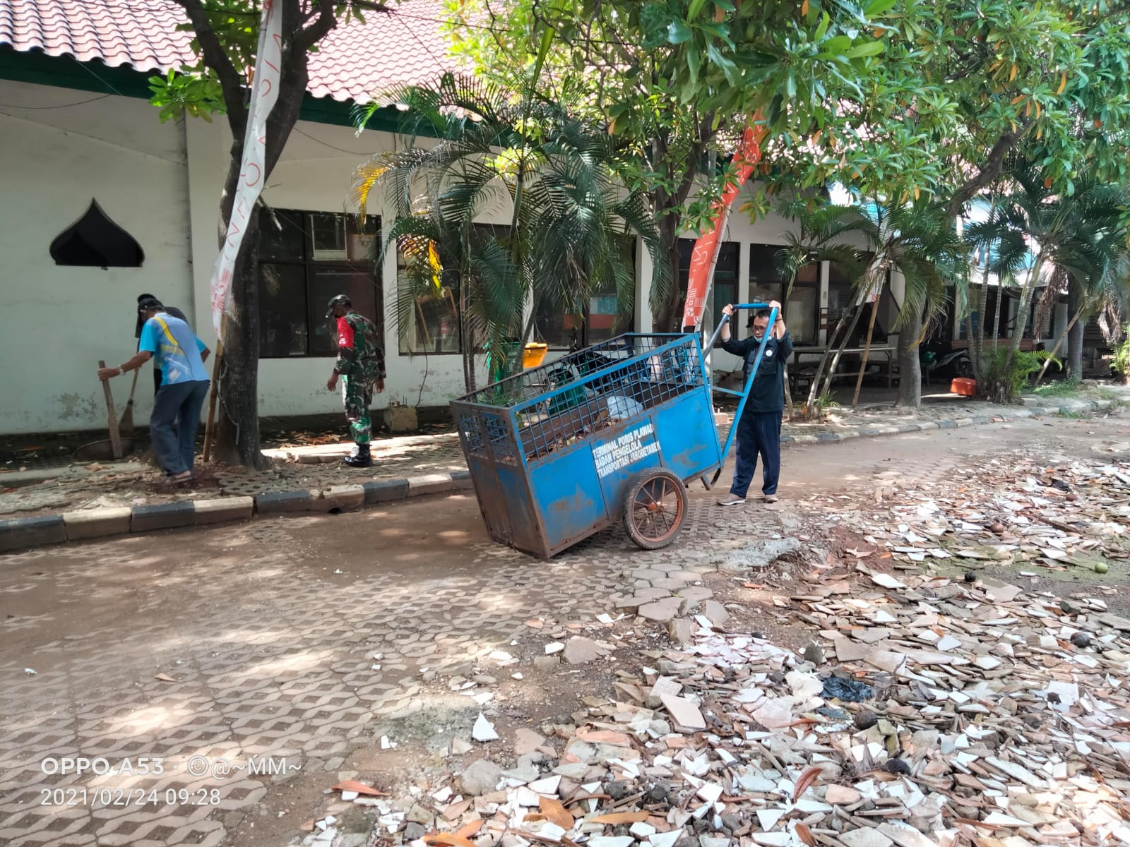 MEGAPOLITANPOS.COM Kota Tangsel - Sebagai upaya untuk menciptakan lingkungan bersih, Babinsa Kelurahan Poris Plawad, Koramil 01/Tgr, Kodim 0506/Tgr Sertu Mahmudin bersama dengan Masyarakat melaksanakan kegiatan kerja bakti membersihkan tumpukan sampah di terminal Poris Plawad, Kamis (12/10/2023).