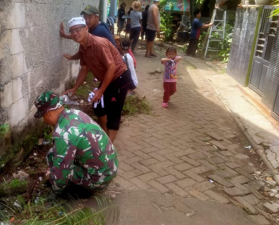 Danramil menjelaskan, dalam kerja bakti yang terlibat langsung 6 personil Babinsa Koramil 09/ Setu yang di pimpin Serka Andri Ari.