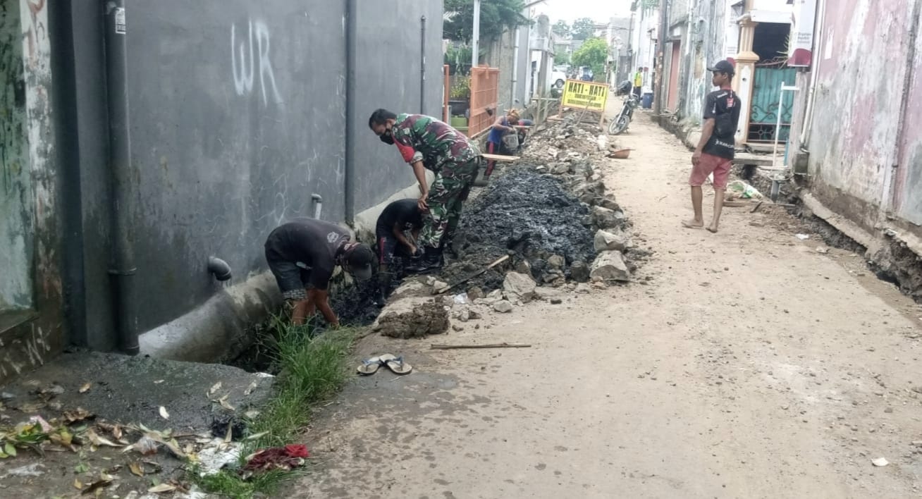Danramil 01/Tgr Mayor Kav Andi Budiman mengatakan, aksi bersih-bersih saluran di permukiman warga ini sebagai upaya mengatasi persoalan genangan yang dipicu saluran tersumbat.