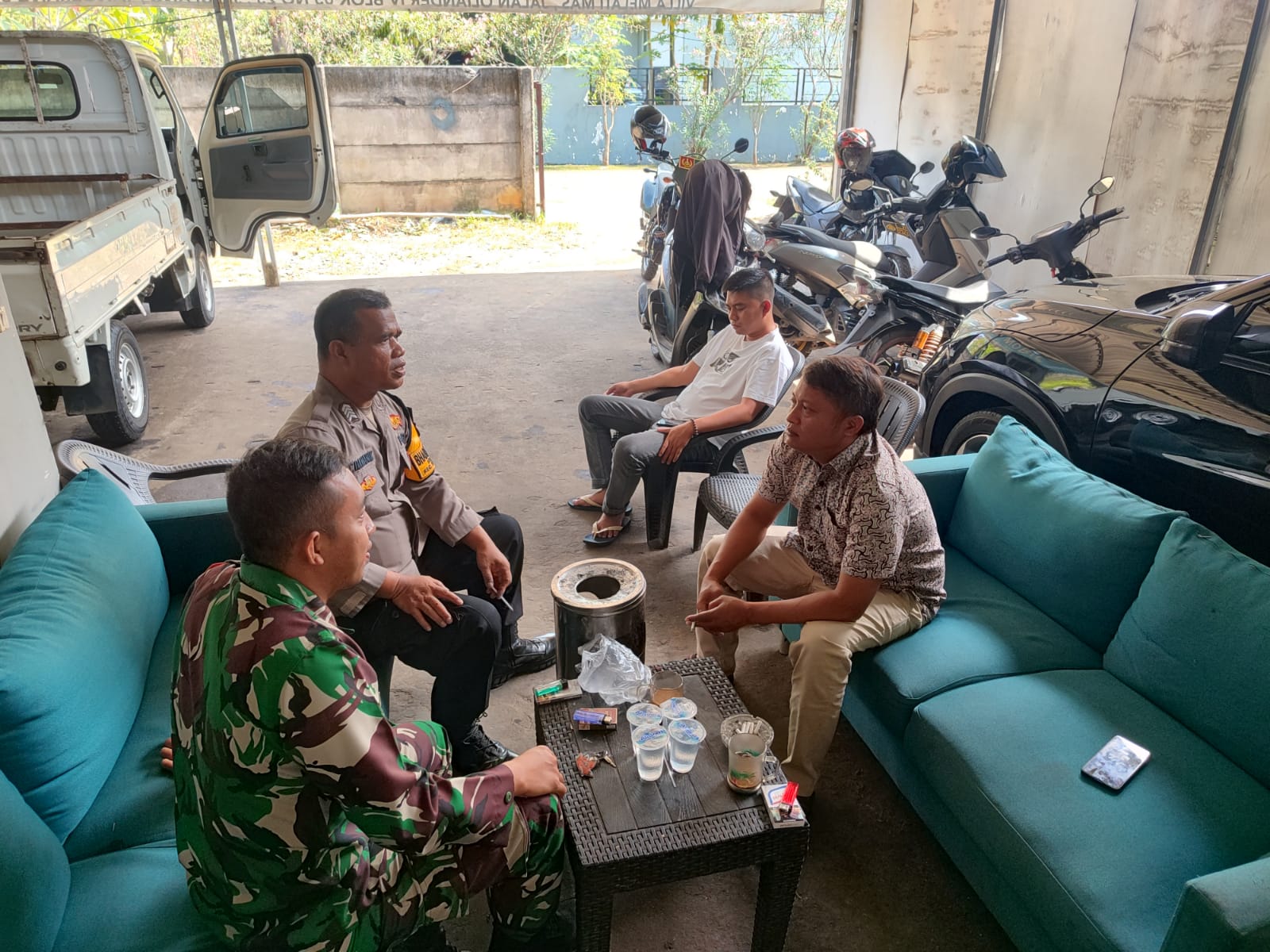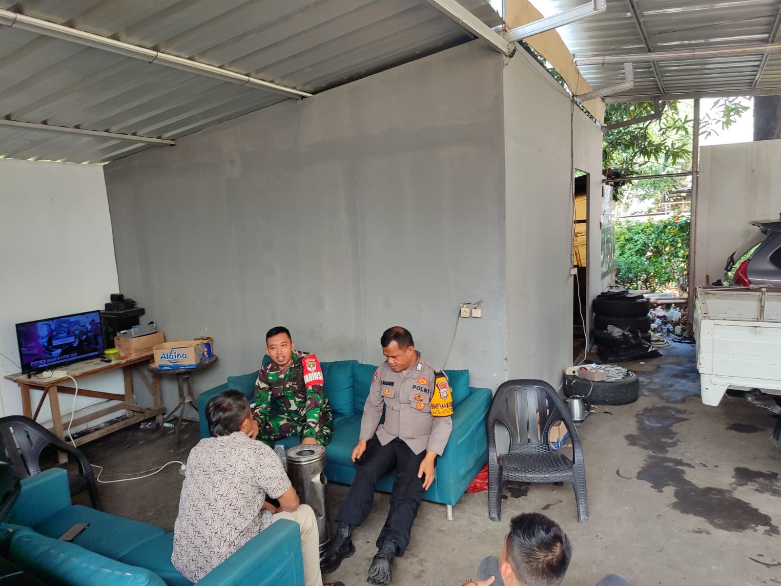 Keterangan Gambar : Anggota Koramil 09/Serut, Serda Suwanto, bersama Bhabinkamtibmas setempat melaksanakan kegiatan komunikasi sosial (komsos).
