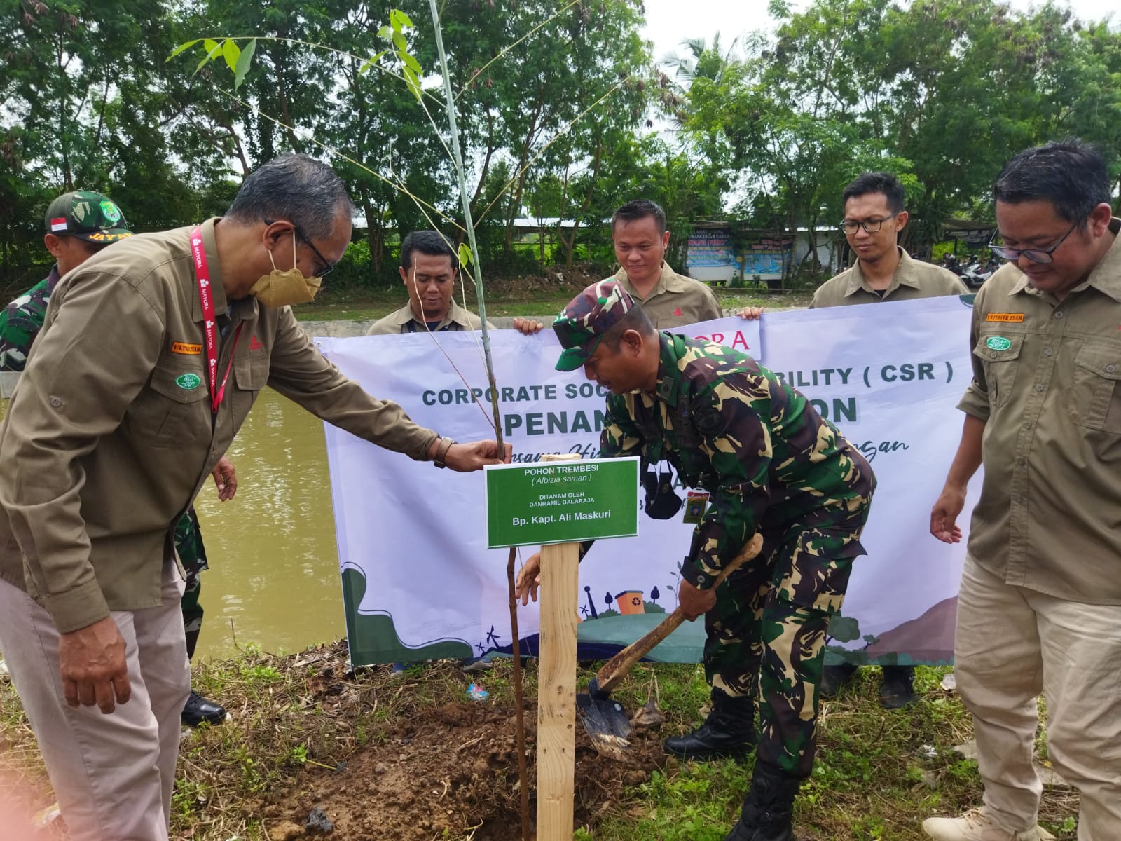 MEGAPOLITANPOS.COMKabupaten Tangerang,- Kerjasama antara Koramil 05/Bljr dengan Pemdes Gembong dan PT.Mayora Group melalui Corporate Social Responsibility dana (CSR) kembali melaksanakan penanaman pohon di sepanjang Sungai Cidurian.