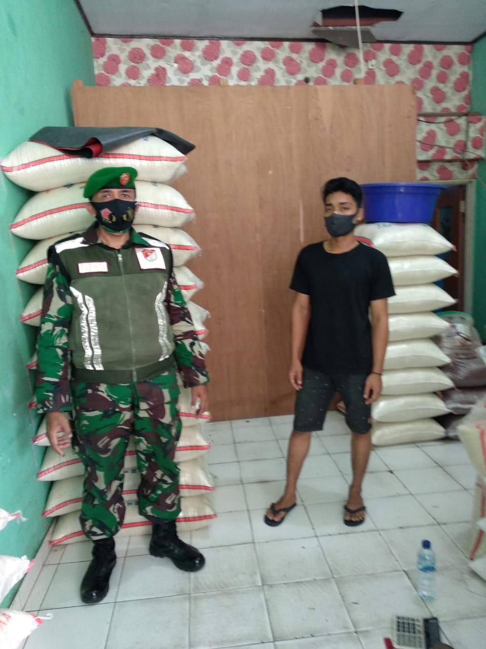 Dalam kegiatannya Serda Vidi S mengecek ketersediaan beras guna memantau ketersediaan serta kebutuhan pangan di wilayah Koramil 01/Tgr.