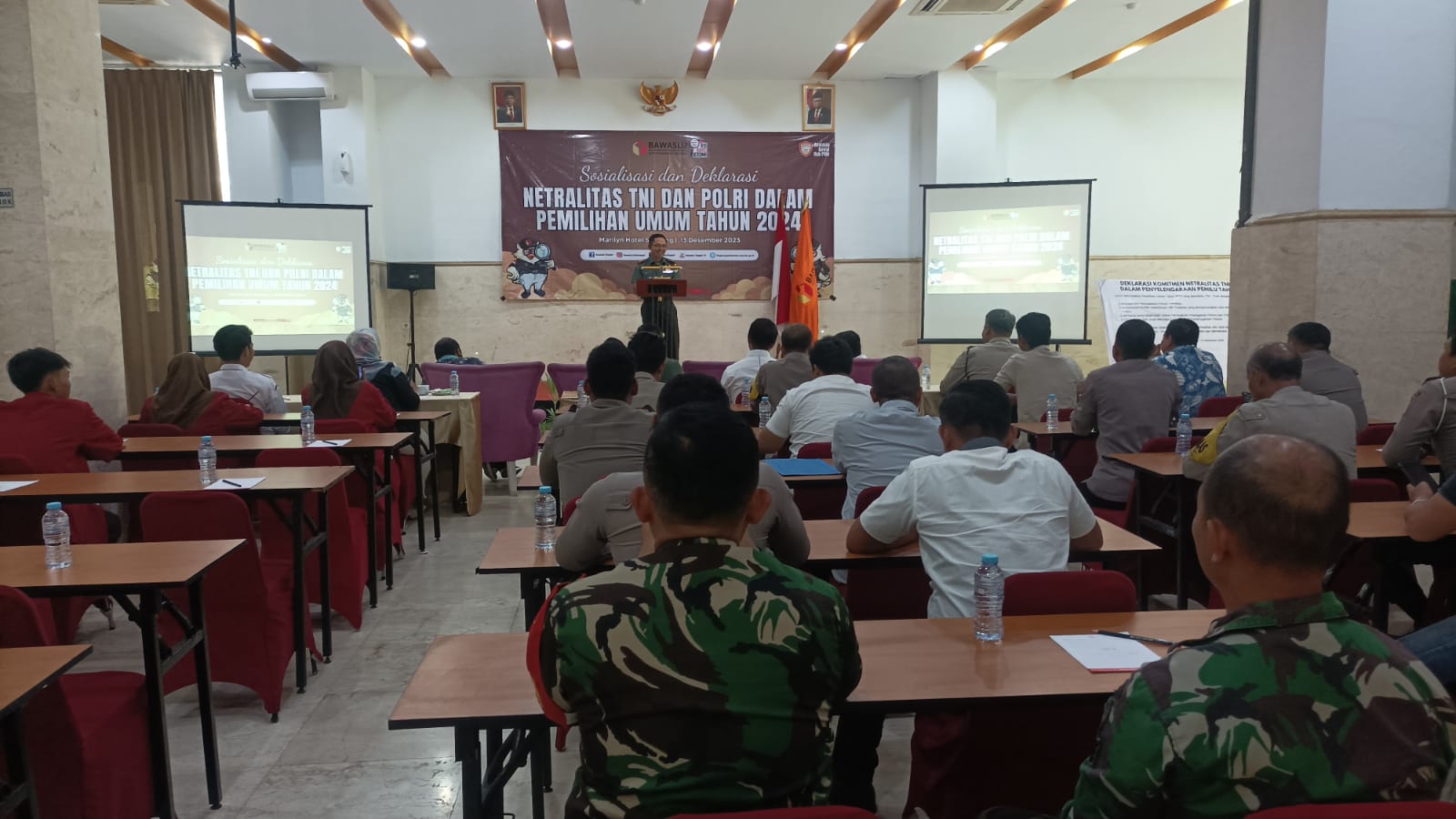 Kegiatan Sosialisasi dan Deklarasi Netralitas TNI dan Polri dalam Pemilihan Umum Tahun 2024, dihadiri 30 orang di antaranya M. Acep Ketua Bawaslu Kota Tangerang Selatan, Mayor Kav Sutarto Danramil 03/Serpong, Akp Yulianto Timang,.S.IK Kabag Ops Res Tangsel, Perwakilan Panwaslu Kecamatan Serpong Utara dan perwakilan Sekolah SMK PGRI 5 Serpong.