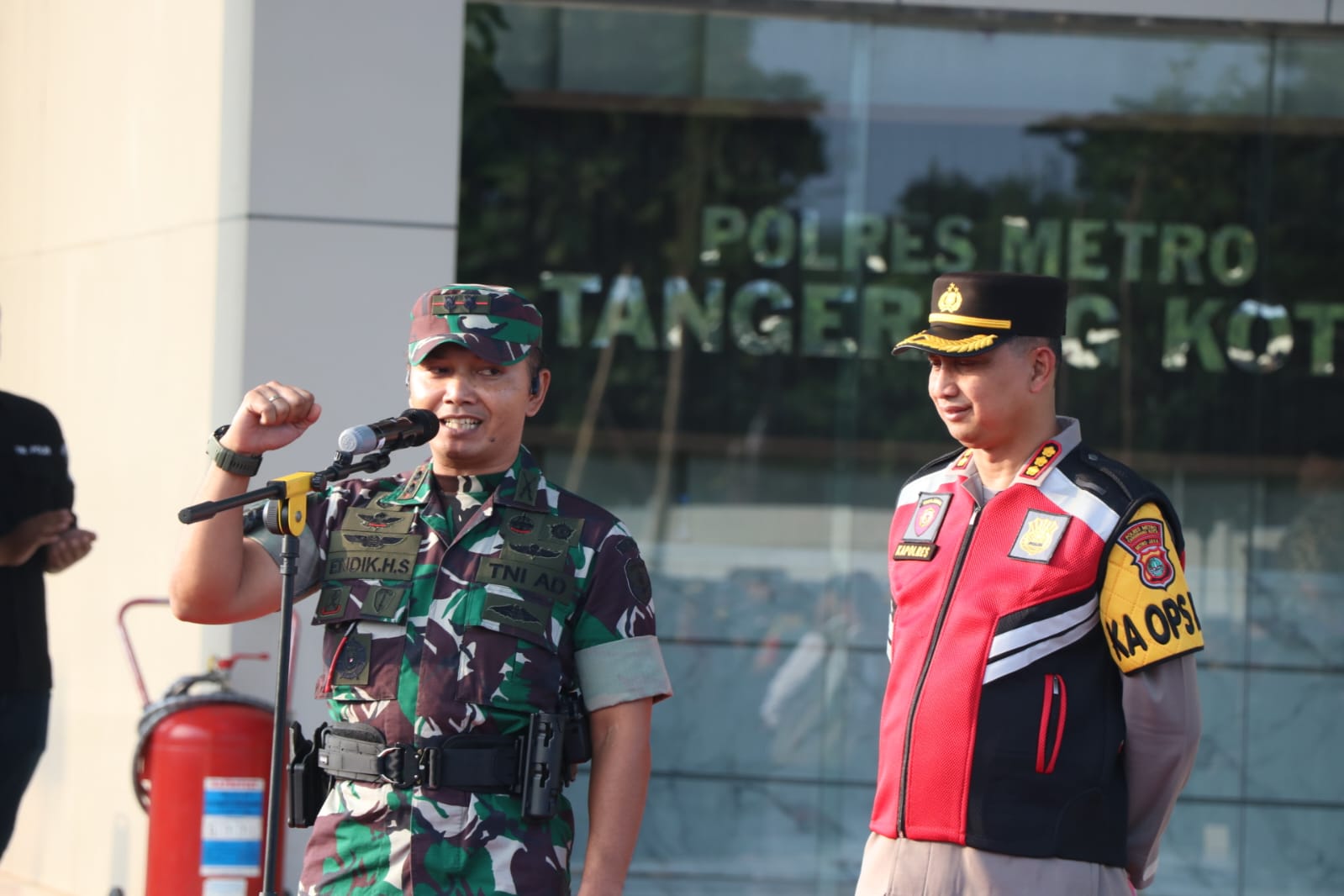 Turut hadir, Dr Nurdin, S.Sos., M.Si Pj Walikota Tangerang, Letkol Inf Endik Hendra Sandi S.Sos,.M.I.Pol Dandim 0506/Tgr, Kombes Pol Zain Dwi Nugroho SH MH S.ik Kapolres Metro Tangerang Kota, H Wawan Fauzi SE.,S.Kom.,MM Kasatpol PP Kota Tangerang, Qory Ayatullah Ketua KPU Kota Tangerang, Para PJU dan Kapolsek Jajaran Polres Metro Tangerang Kota. ** Sumber Kodim 0506/Tangerang