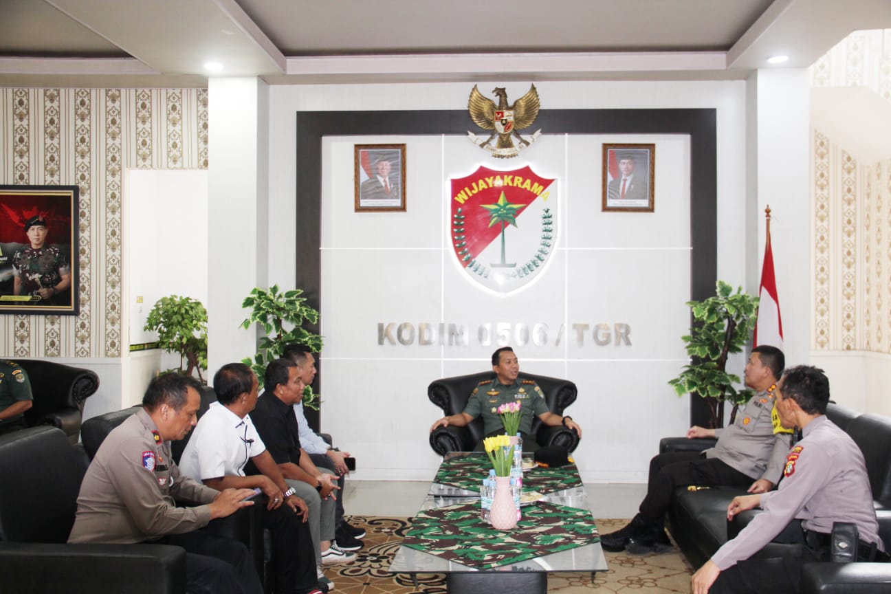 Dandim 0506/Tgr Letkol Inf Ary Sutrisno menyambut hangat kedatangan Kapolres Bandara Soekarno-Hatta. Kedatangan Kapolres merupakan acara silaturahmi antara Dandim 0506/Tgr bersama Kapolres.