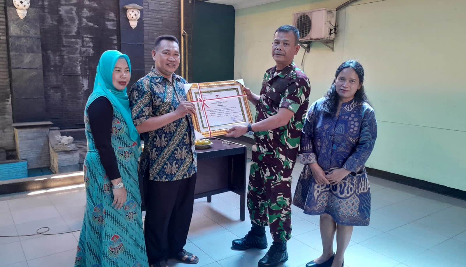 Keterangan Gambar : Danramil 04/Cikupa, Kodim 0510/Trs Kapten Kav E Panjaitan melepas dua anggota Koramil 04/Cikupa yang masuk purna tugas