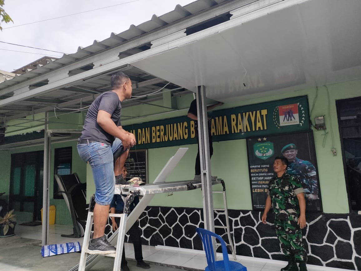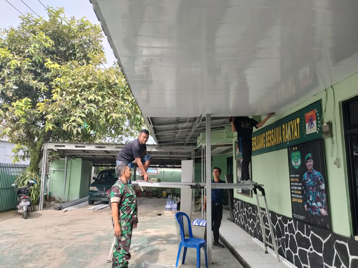 MEGAPOLITANPOS.COM Kab Tangerang,- Danramil 05/Blrj Kodim 0510/Trs Kapten Inf Ali Maskuri SE memimpin langsung pelaksanaan kegiatan pembenahan dan perbaikan pangkalan yang dikerjakan sendiri oleh Anggota. Kegiatan yang dilakukan antara lain, pembenahan plafon.