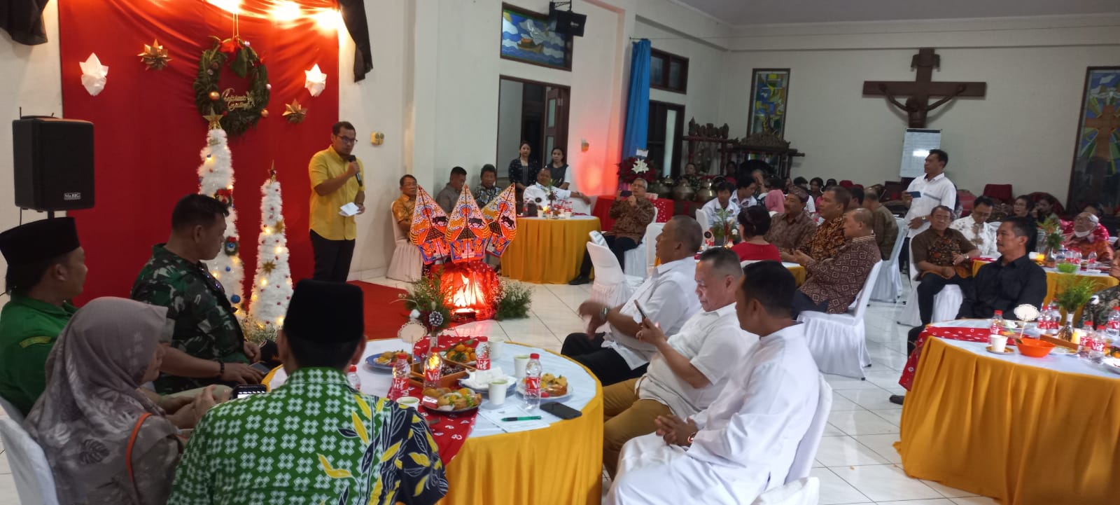 Sementara, Petrus Cipto Nugroho, S.C Pastor Kepala Paroki menyampaikan, open house ini ajang silaturahmi antar umat beragama agar toleransi kerukunan umat beragama dalam penghayatan untuk menyadari bahwa semua orang dapat hidup berdampingan, bersaudara, dan perdamaian.