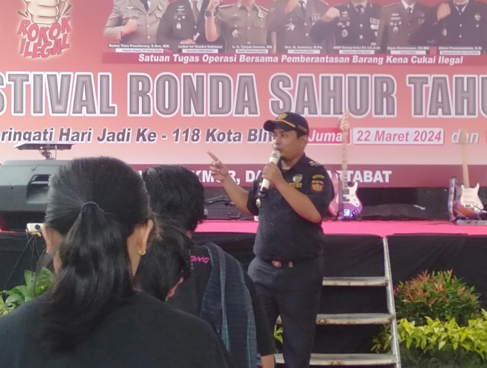 Festival ronda sahur juga juga dilakukan sosialisasi gempur rokok ilegal festival musik ronda sahur tahun 2024, seperti disampaikan oleh Kasatol PP adalah "Dalam rangka memperingati hari jadi Kota Blitar ke 118, Hut Satpol PP ke 74, Linmas ke 62 dan Hut Damkar ke 105 harus tetap dijaga kelestariannya, karena ronda penggugah sahur identik dengan kerukunan," ungkap Santoso.