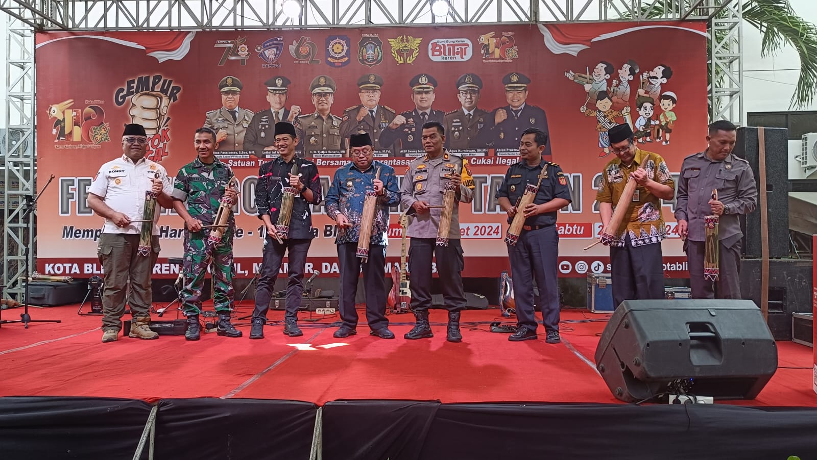 Keterangan Gambar : Walikota Blitar, Drs Santoso Sosialisasi gempur rokok ilegal festival musik ronda sahur tahun 2024 di Kota Blitar.