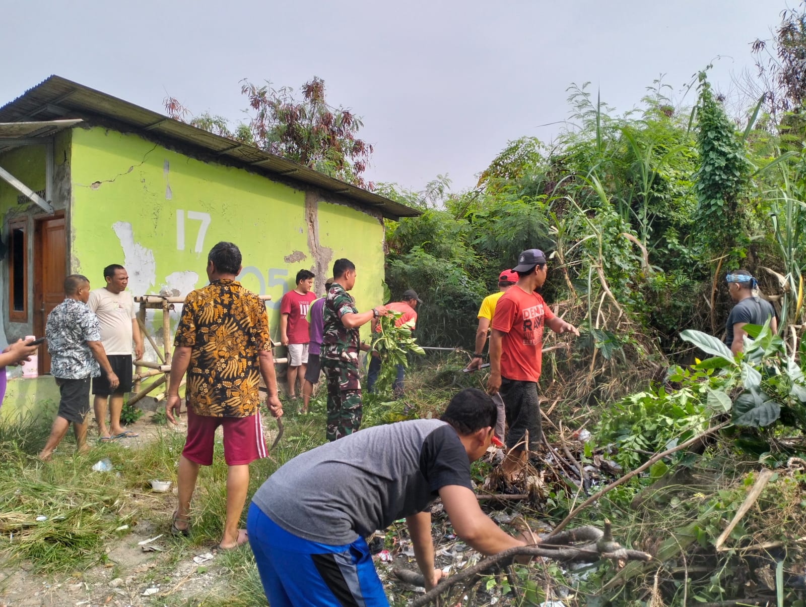 Kegiatan gotong royong dalam rangka mewujudkan lingkungan bersih dan sehat ini dilakukan Babinsa bersama warga demi menciptakan kepedulian terhadap lingkungan sekitar, mengingat jalan yang sebagian sudah di tumbuhi rumput dan selokan disepanjang jalan utama juga ada yang tertutup tanah.